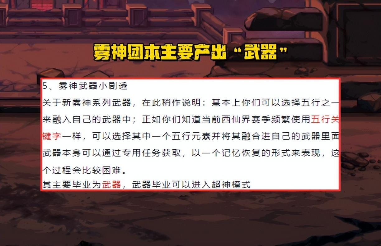 雖然目前這條消息已經刪了,不過在玩家心中還是有很大可信度的,因爲在之前韓服策劃的爆料中,我們就已經知道了,“霧神妮”主要產出防具貼膜,而“霧神”則主要產出新武器。