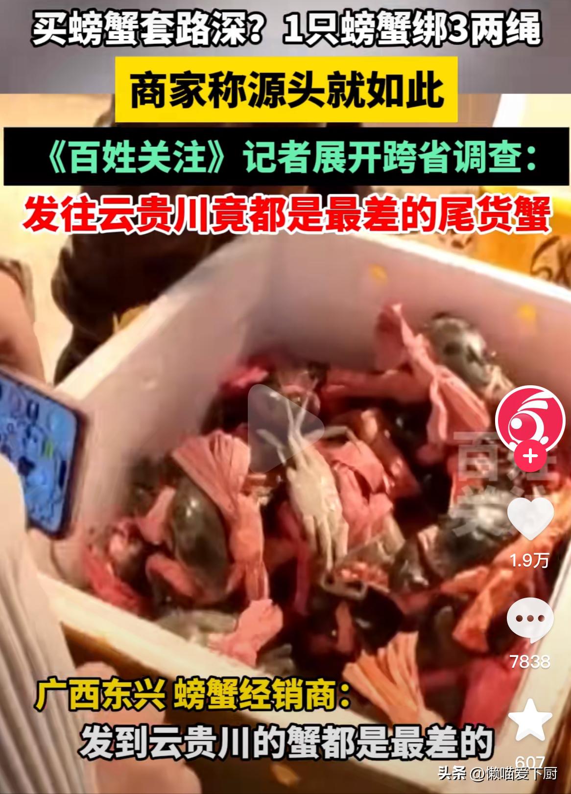 當地螃蟹經銷商說,有的客戶讓他們在捆螃蟹的繩子上動手腳,加重繩子的重量。這就算了,更讓人氣憤的還在後頭。
