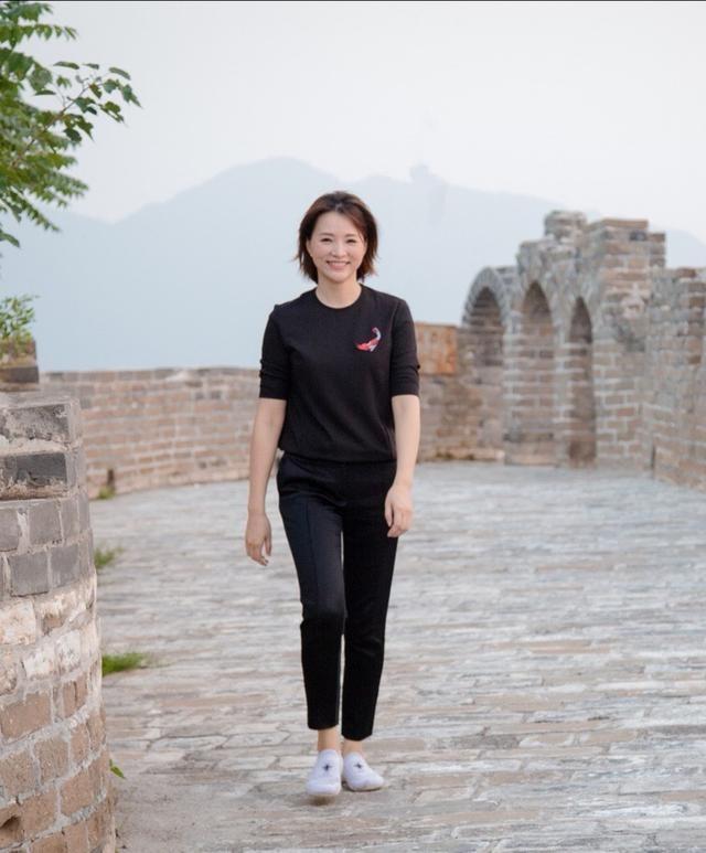 在外出遊玩爬山時,輕鬆舒展是最好的穿搭選擇。董卿身穿搭黑色的圓領印花衛衣,搭配着黑色的休閒褲,彰顯出活力滿滿的氣息。白色的平底鞋是運動的最佳選擇,讓腳部更加放鬆的同時,還可以讓整體的穿搭色彩更加協調,不會顯得枯燥無味。