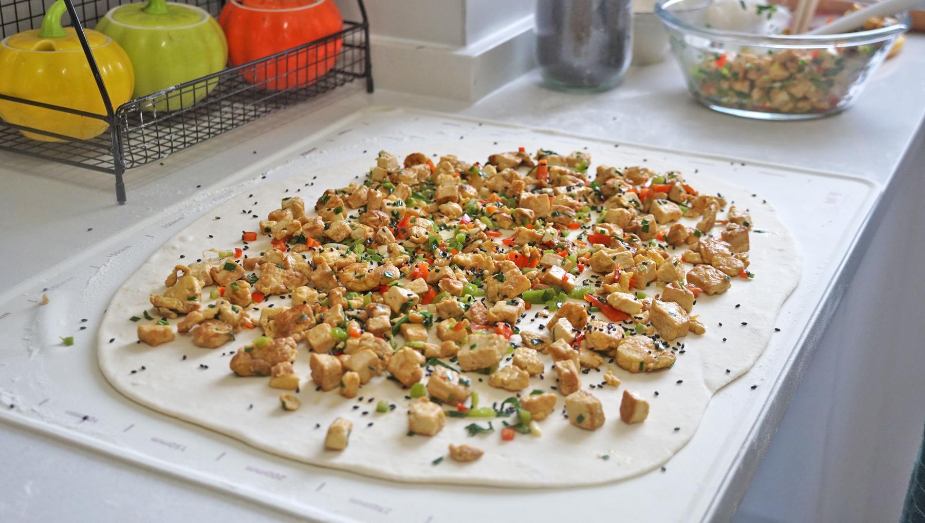 餡兒:豆腐、雞蛋、青椒、紅椒、香蔥