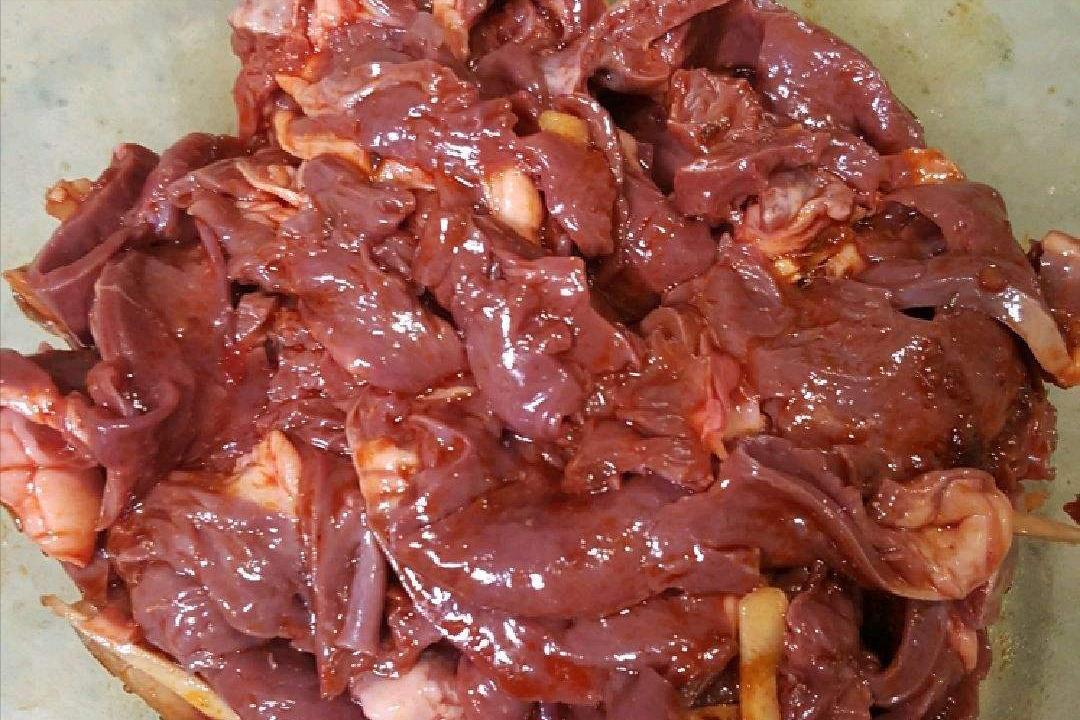 2、豬肝1塊,清洗乾淨後切片,裝入大碗裏,加清水再衝洗幾遍,洗淨血水。接着加蔥段、薑片、料酒去腥,用手抓拌均勻後先醃製10分鐘。醃好後再清水沖洗幾遍;