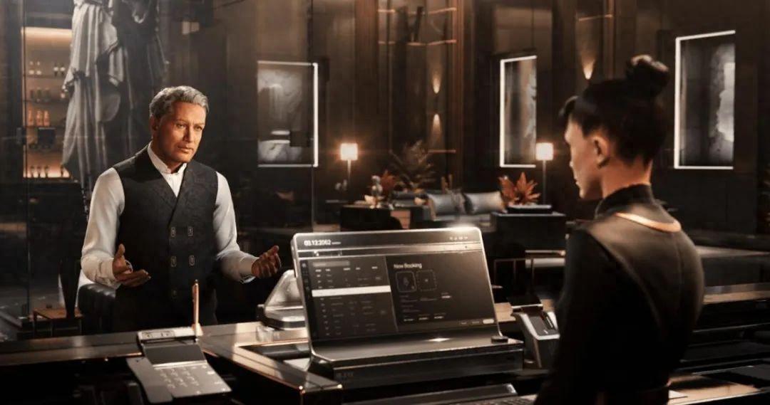 現場的NVIDIA工作人員還鼓勵你做更多的刁鑽問題。每當我試圖問出一些 “你家有幾口人” 之類和遊戲內容本身完全不搭界的話題,指導我的NVIDIA工作人員就會開始露出一副看好戲的表情:“讓我們來看看會發生什麼”。譬如這位大堂門口的酒店接待員,看起來心情不太好,但仍然試圖保持對客人的禮貌,背地裏他是一位家庭幸福的雞尾酒愛好者,但如果你嘗試問他的音樂喜好,他也能給出合理的回答。
