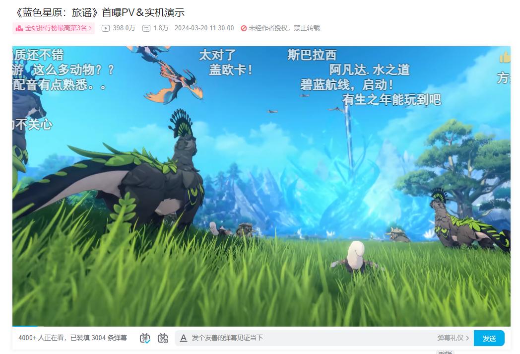 整支PV中精美的概念CG並沒有佔據太多時間,實機演示也沒有花哨的運鏡剪輯,遊戲做成什麼樣就大大方方拿給玩家看,音樂請了楊秉音、西木康智、川井憲次多位製作人參與,遊戲各方面的素質和豐富的美術資產也能讓你感覺出它已經打磨了很久,這是很多玩家對《藍色星原:旅謠》的第一印象。