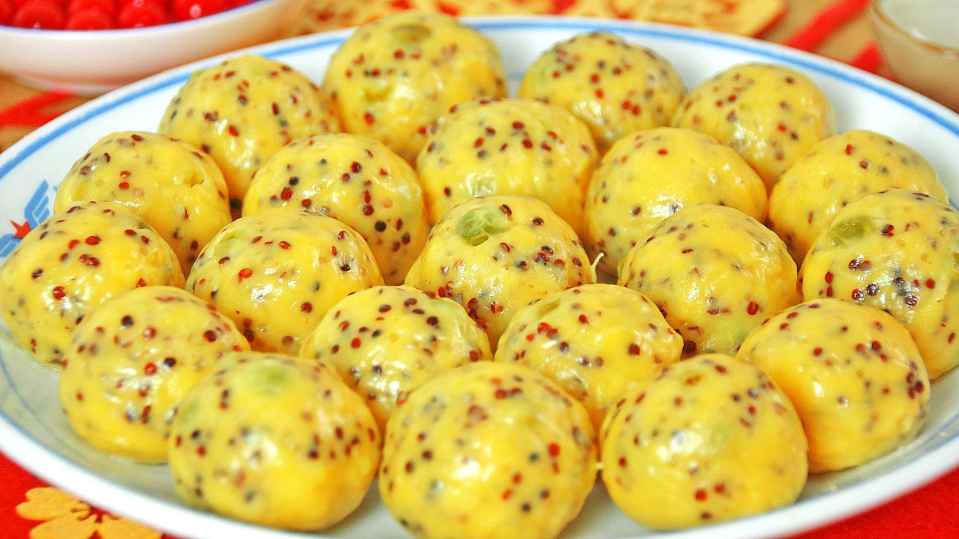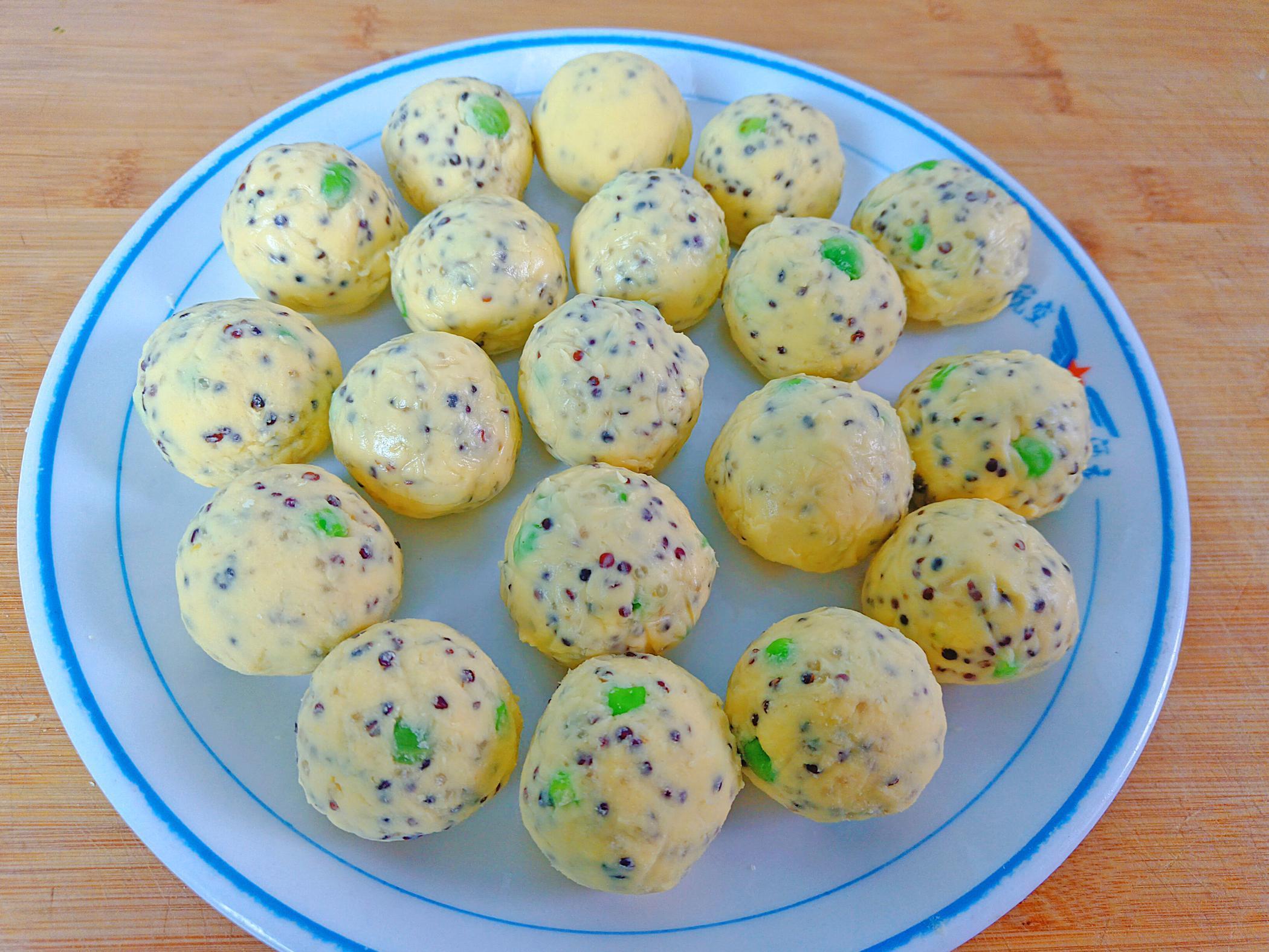 5、然後下手揉成一個光滑的麪糰兒,只要能捏緊不散開就行。如果覺得有點粘手,就再適量的加點玉米麪,麪糰兒揉好後楸一小塊兒,搓成一個小圓球,我們的青豆藜麥丸子就做好了。
