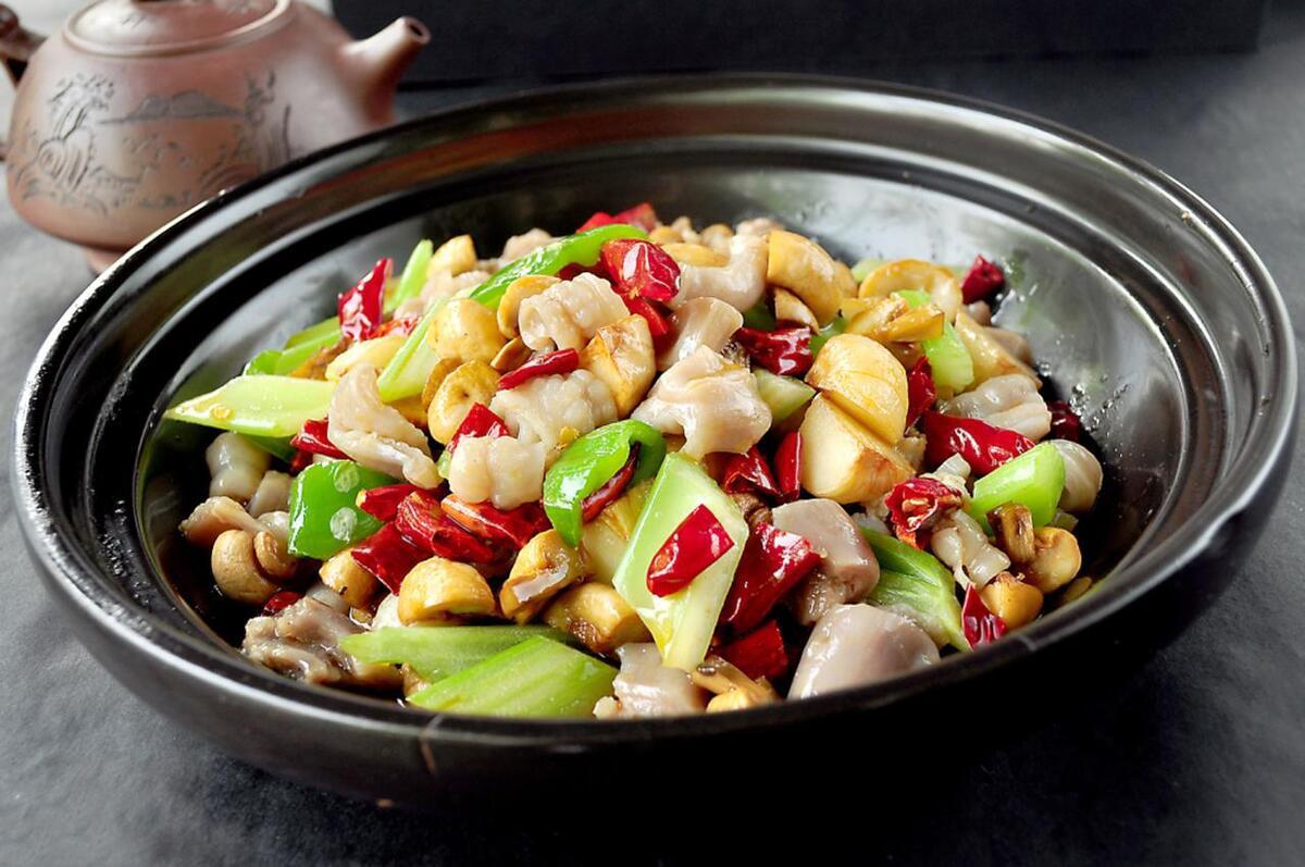 1、雞胸肉1塊,切成小丁,裝入碗裏後先醃製一下,加蔥段、薑片、料酒去腥,然後再加鹽、胡椒粉、生抽、老抽入個底味兒,最後再加一勺玉米澱粉,接着上手抓拌均勻,然後醃製20分鐘備用,醃好後把蔥段和薑片挑出來不要就行。