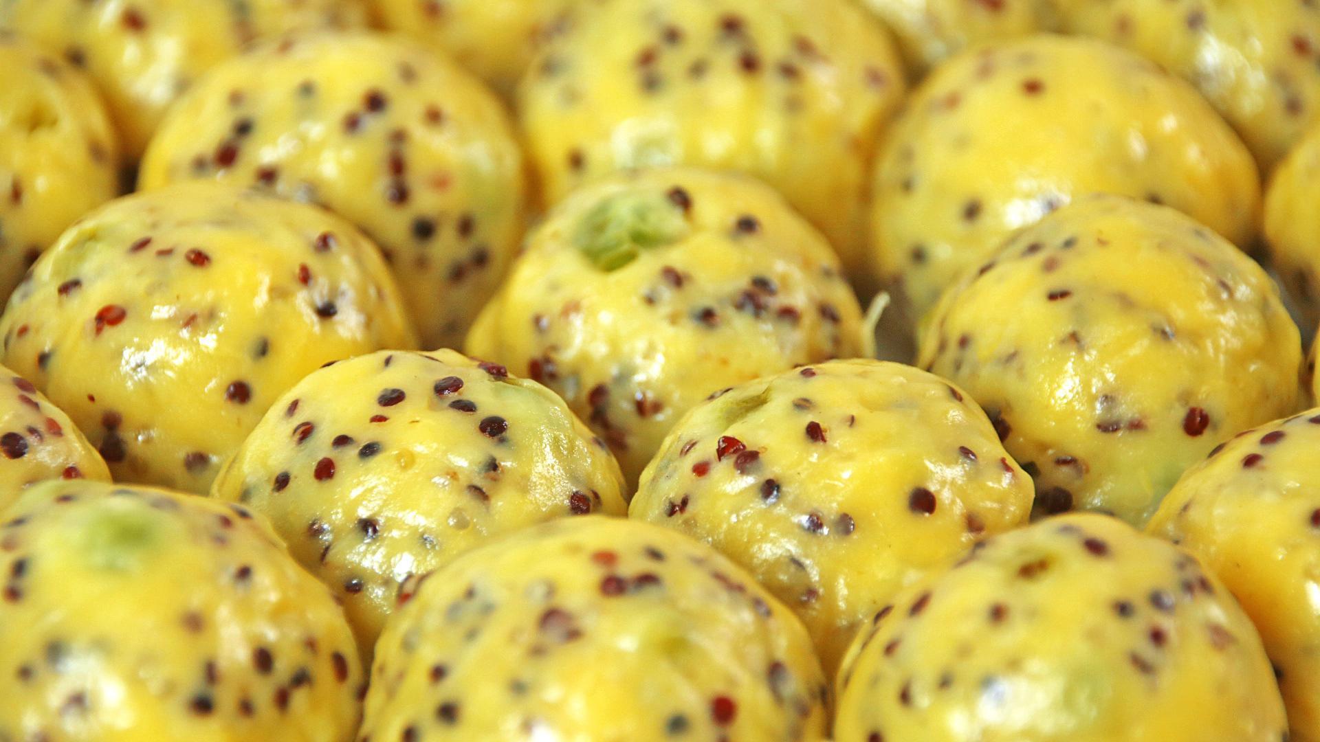 6、起鍋燒水,水開放入藜麥雜糧丸子。蒸屜記得提前鋪上防粘墊,沒有的話蒸屜薄薄的刷一層熟油也是一樣的,水開計時,大火蒸15分鐘就熟了,關火後就可以出鍋了。