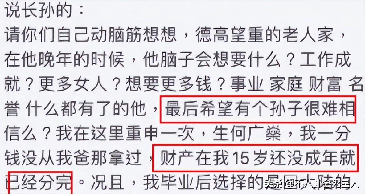如何猷君所說的,賭王的家產在他15歲還未成年的時候已經分完了,何廣燊並不是爭產的“工具”。