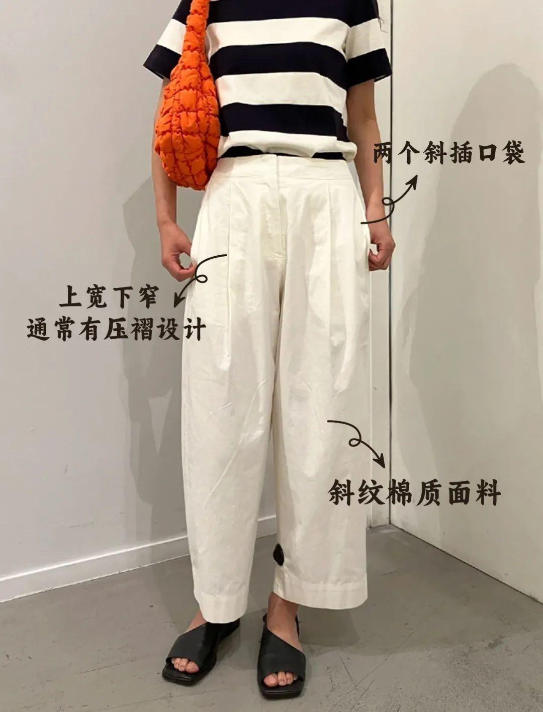 如果你的腳踝線條比較纖細的話,那麼就一定不要錯過上寬下窄的錐形褲。像這種長度九分的褲裝,剛好露出腳踝位置,很符合春日的氛圍感。