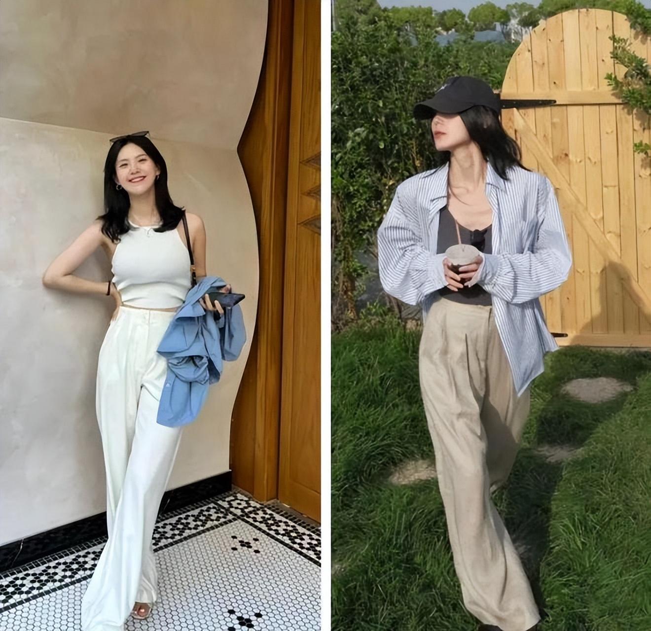 空氣褲和闊腿褲最大的區別,就在於襠部和垂墜感,闊腿褲的襠部比較緊,而且沒有明顯的垂感,所以不具備顯高的功效;相比之下,空氣褲憑藉着寬鬆的襠部,增添了舒適力度,再加上垂墜感十足的褲腿,顯高效果也很不錯。