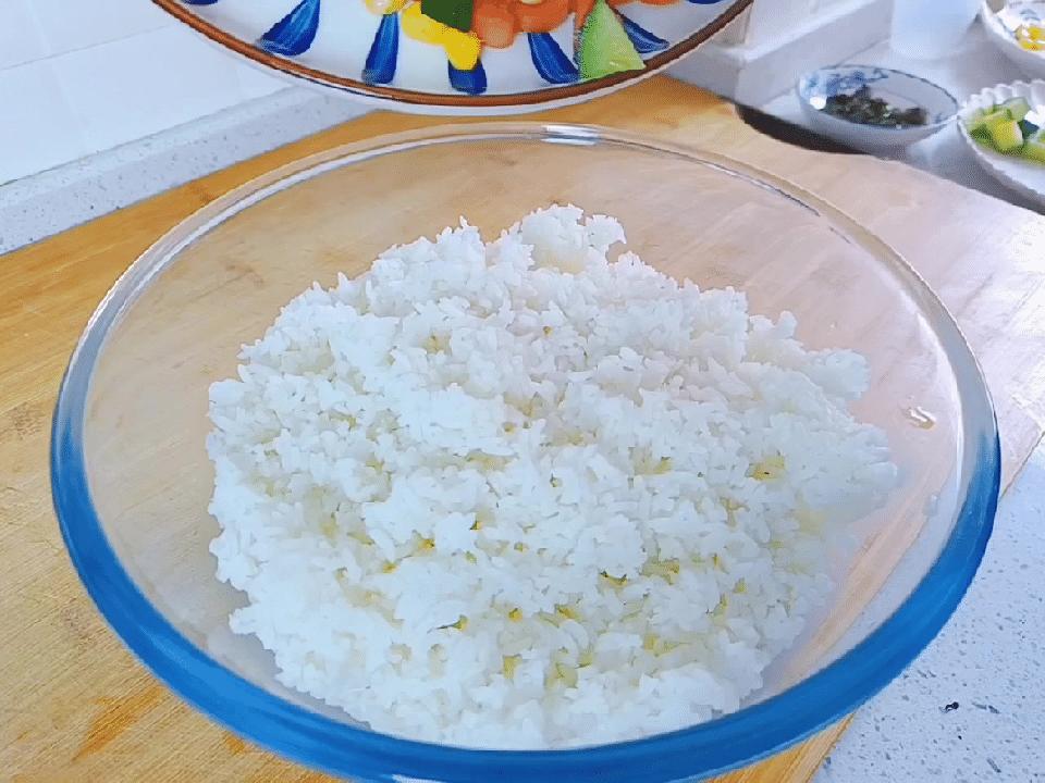 2、米飯煮熟立即關火,用盛飯勺立即攪拌鬆散,可以讓米粒們都蓬鬆起來。