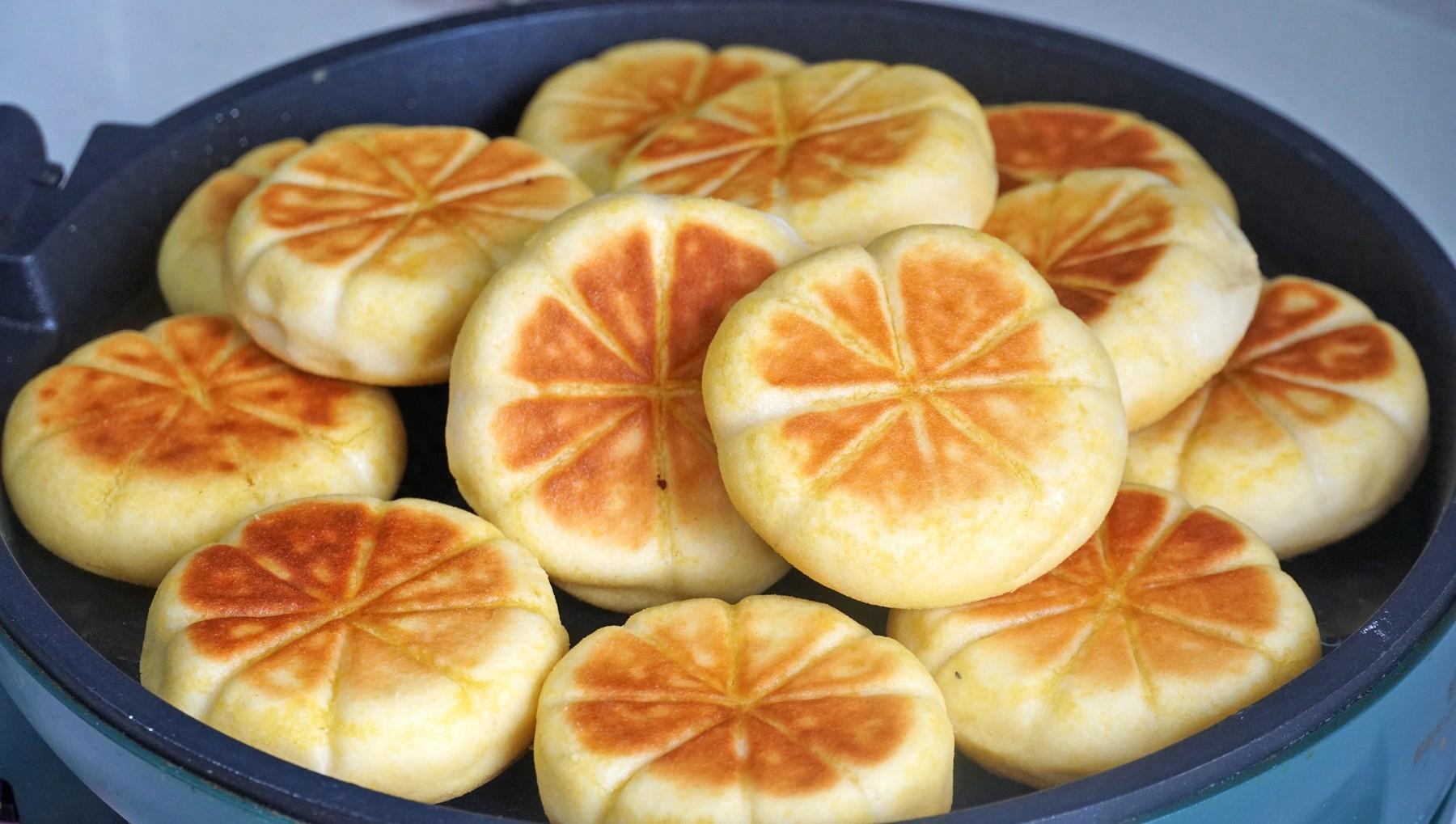 7、加熱的過程中麪餅還會稍微鼓起來一些,這就是發麪餅的口感了。