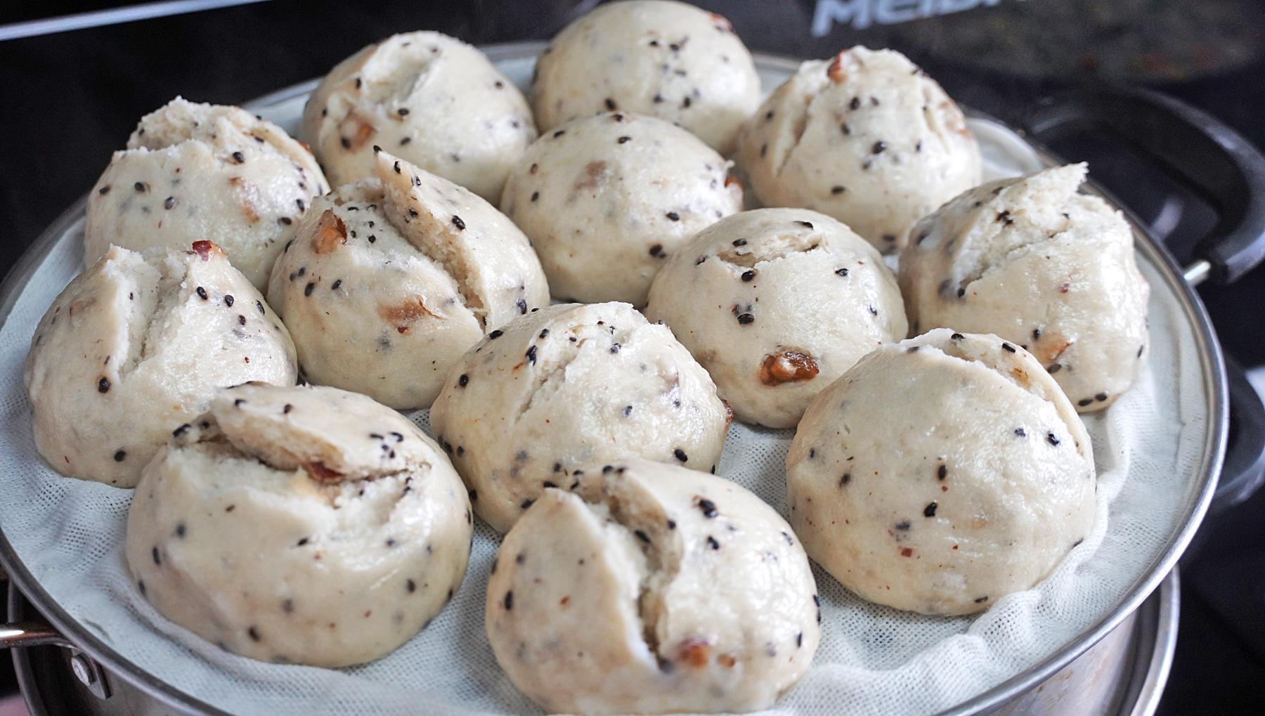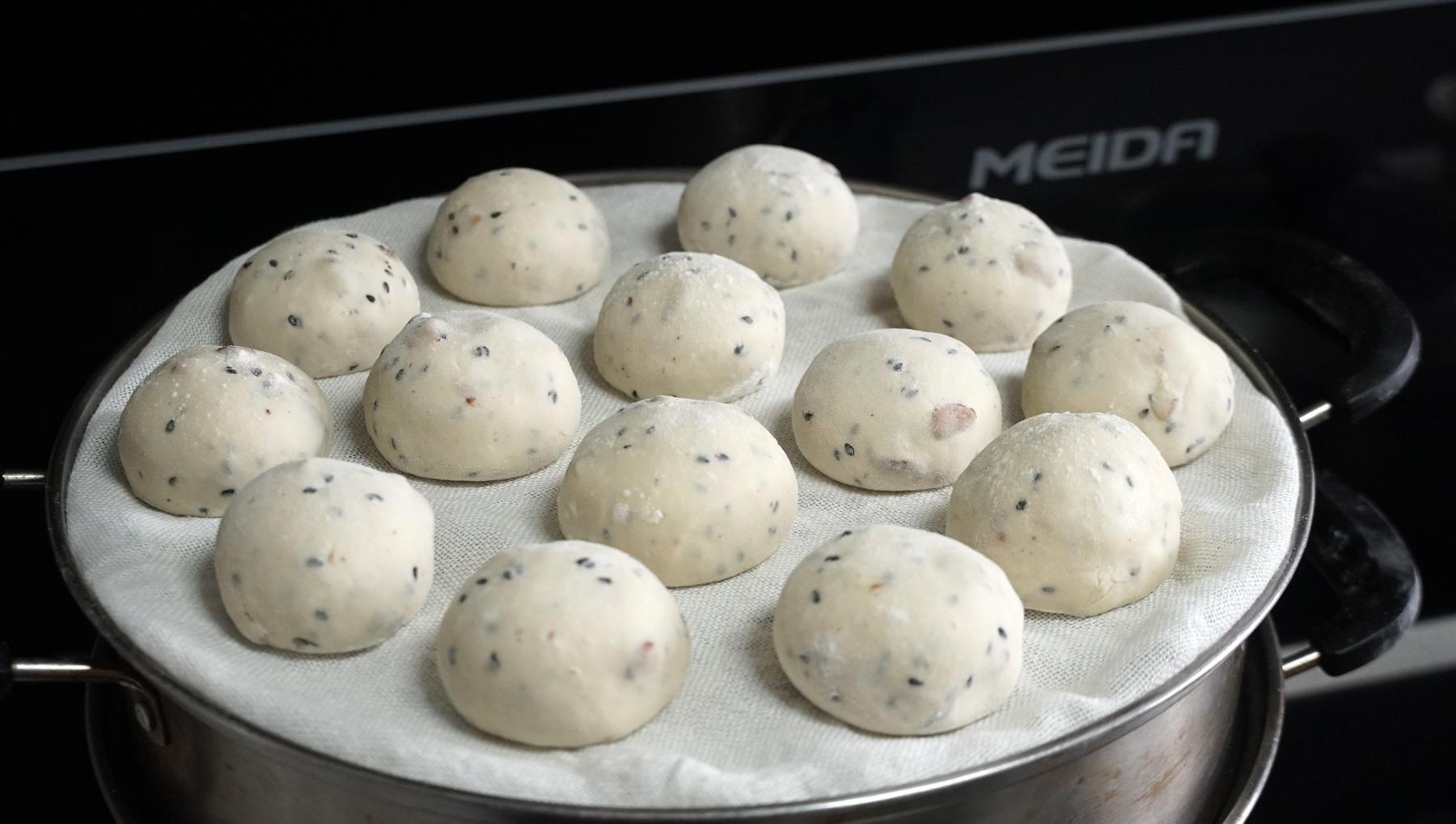 8、鍋裏的饅頭髮好了體積又變大了一點,直接開火蒸,大火15分鐘,關火燜個3分鐘,開蓋了一鍋香甜的紅棗山藥饅頭,
