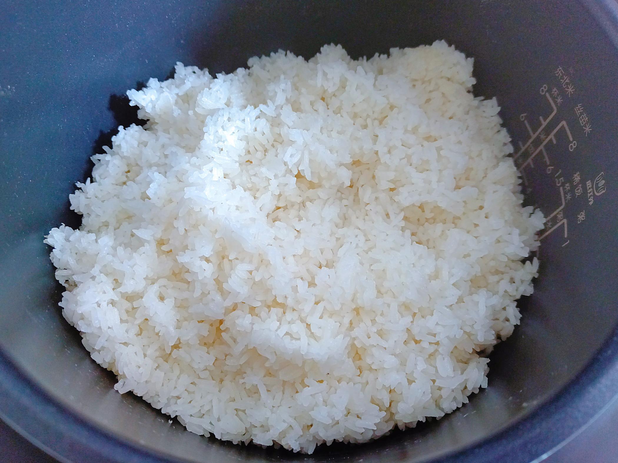 1、大米2杯,淘洗乾淨後倒入電飯鍋中,加3杯清水,浸泡30分鐘後加2滴香油,攪拌均勻後開始煮飯。