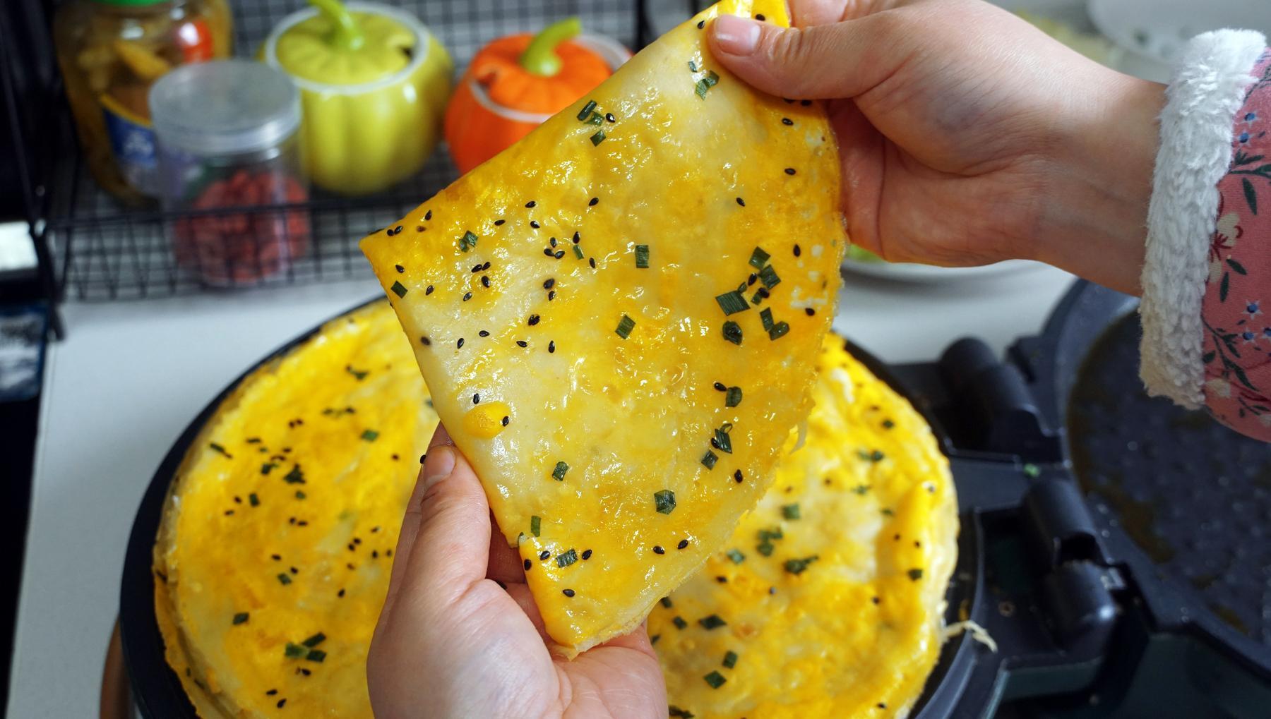 5、我這裏是200克麪粉、400克水和 3個雞蛋,一共是攤了6張餅;這個餅的含水量特別足,喫起來特別的軟,