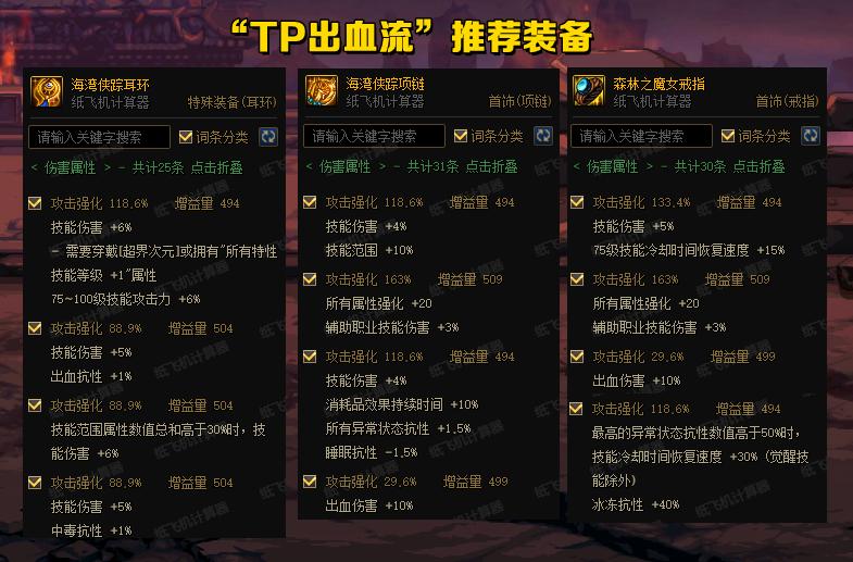 以“藍靈上衣+海俠耳環”爲核心,搭配了9件自定義,出血流本來就比直傷流高一點,再加上這裏還搭配了“TP出血流”,所以極限傷害上漲了一大截。