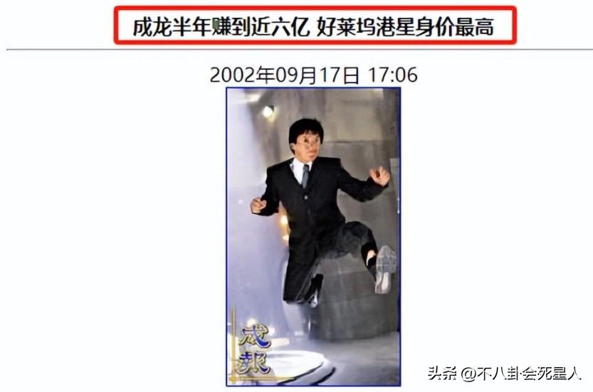 2001年,成龍年收入已經高達5億港幣。到了2002年,光是上半年他已經接了4部電影,片酬高達6億元。