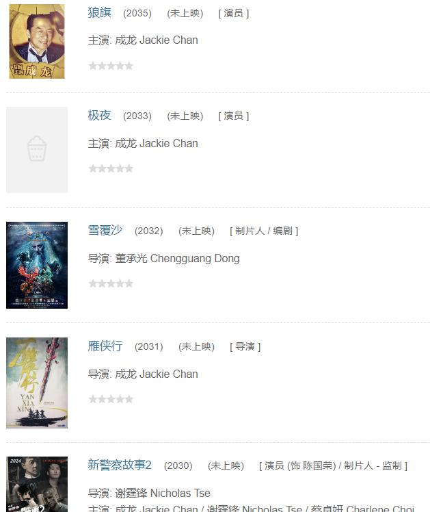 翻看成龍的待播作品,原來成龍未上映的電影還不止這一部,後面還有近30部電影等着上映,排到了2035年,要知道,2035年的時候,成龍都81歲了。