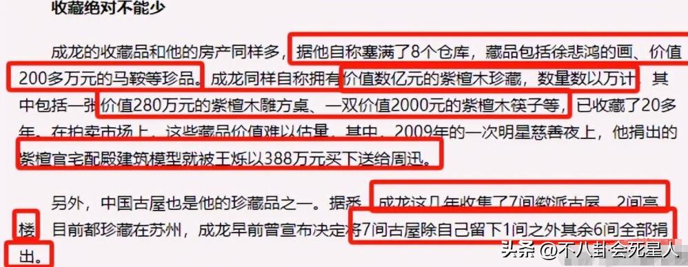 成龍也是一位很有回饋社會的慈善明星,他花了大價錢的很多收藏品和建築,在他晚年都被捐出去了。