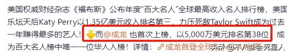 曾經有臺媒報道,成龍的身家是25億元,但事實上,成龍的真實身家恐怕遠不止25億元。