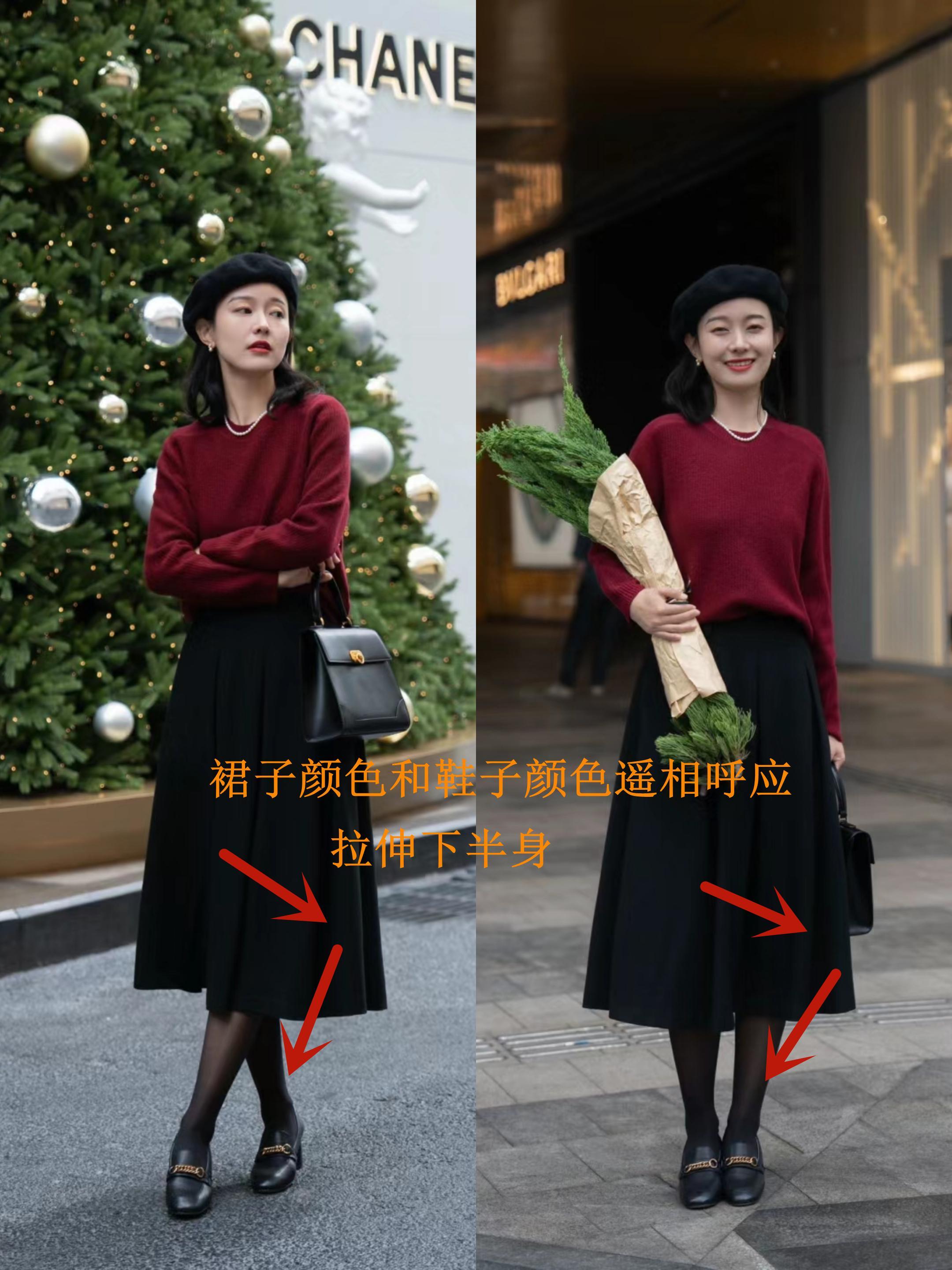 穿裙子是一件很有講究的事情,尤其是裙裝和鞋子的顏色,一旦選錯,就容易影響到風格走向,並且拉低造型的檔次。真正有智慧的女人,往往都懂得選擇顏色呼應的裙裝和鞋子,比如黑色傘裙+黑色樂福鞋,再搭配上一條透膚感的黑絲,性感又高級。