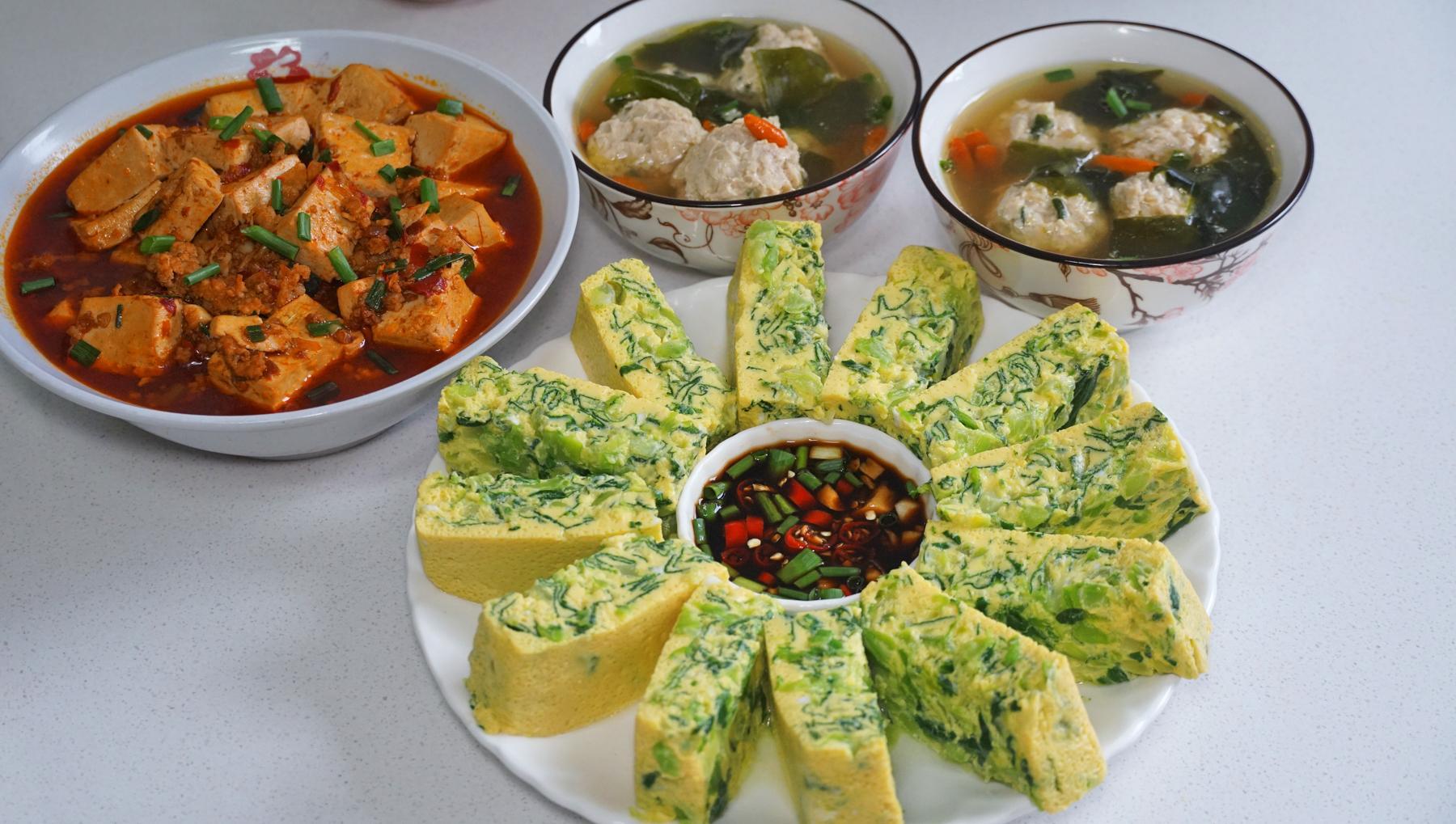 還煮了一鍋丸子湯,還煮了一個麻婆豆腐,午餐又是豐富的一餐。