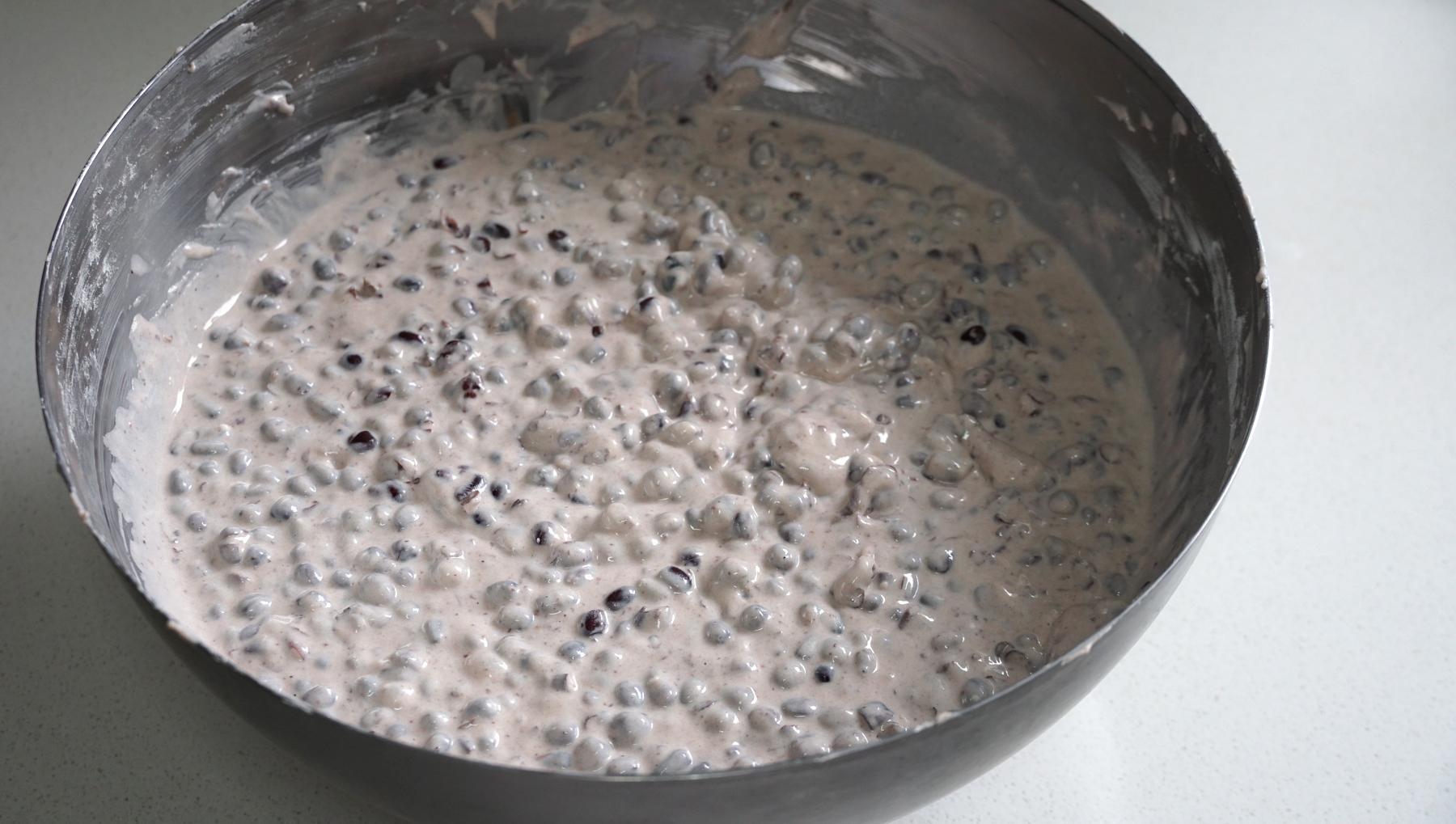 4、粉漿的程度是稍微偏稀,模具刷油,倒入麪糊,大火繼續蒸個40分鐘左右。