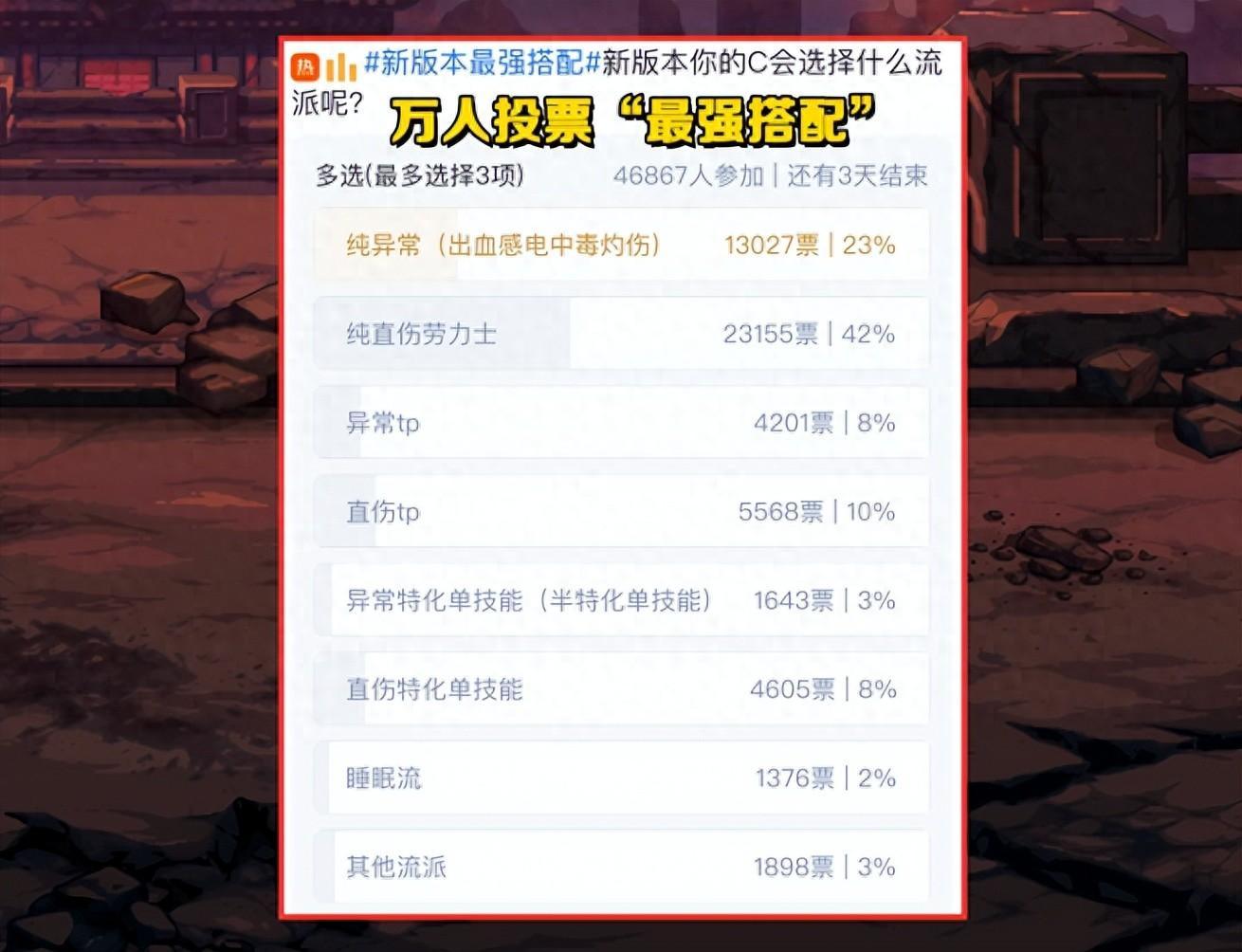 但大家發現了,這2套搭配的投票比例並不高,“異常TP流”只有8%,“直傷TP流”也只有10%而已。