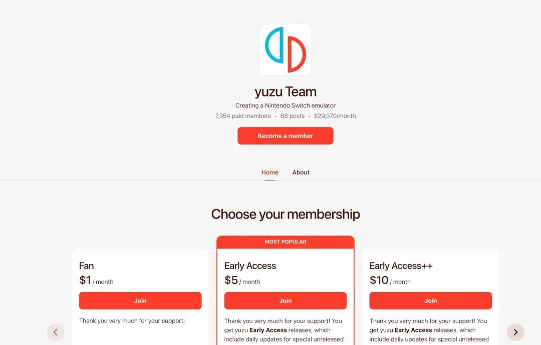 更關鍵的是,YUZU模擬器的開發團隊還在衆籌平臺Patreon上開啓了付費訂閱的功能。並在任天堂至關重要的大作《塞爾達傳說:王國之淚》發售前,就公開支持模擬這款遊戲,期間訂閱數翻了一倍。