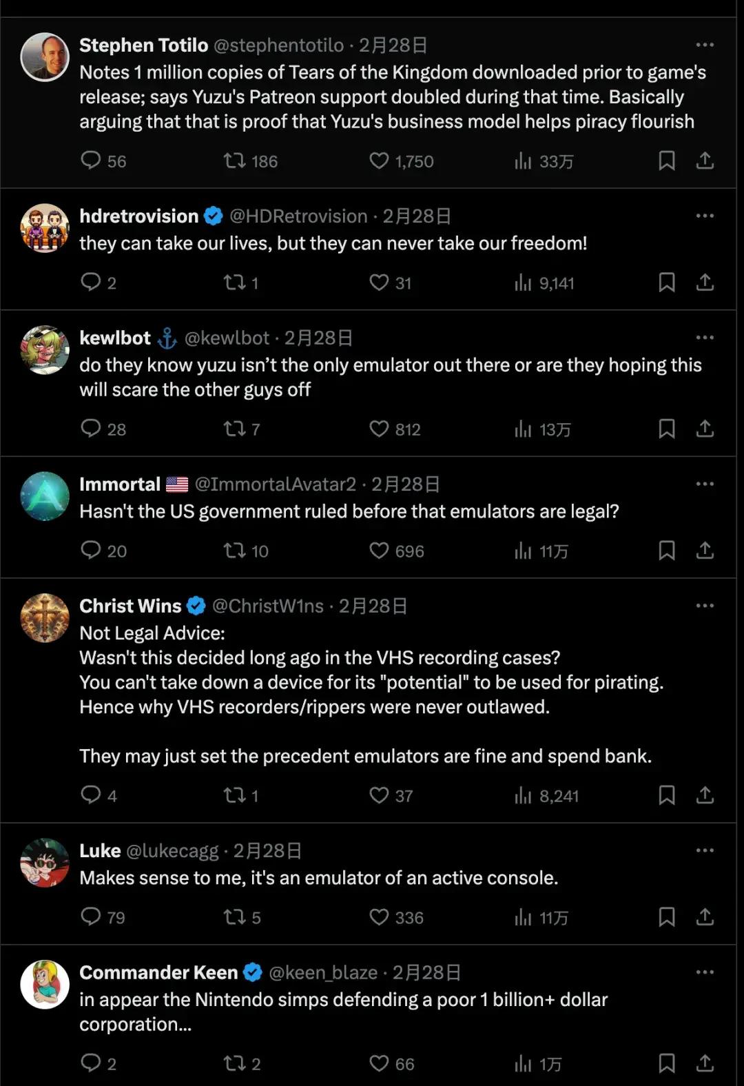 輿論混雜着各種聲音,當然有許多人支持任天堂打擊助長盜版之風的YUZU模擬器,但也有人認爲大企業應當花更多功夫在提升用戶體驗上,而不是擠兌民間開發者;
