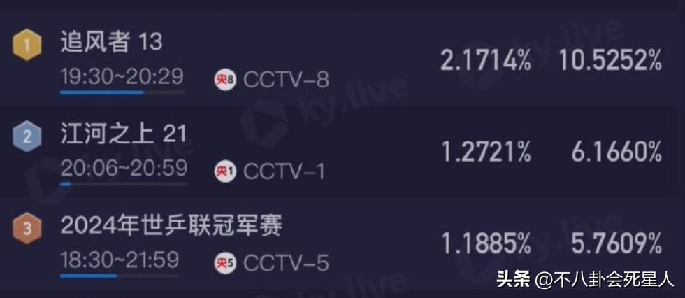 原本,《江河之上》的收視率還挺不錯的,一直保持着破2的水平。但觀衆的眼睛是雪亮的,自從《追風者》開播後,觀衆的視線就都被《追風者》搶走了。