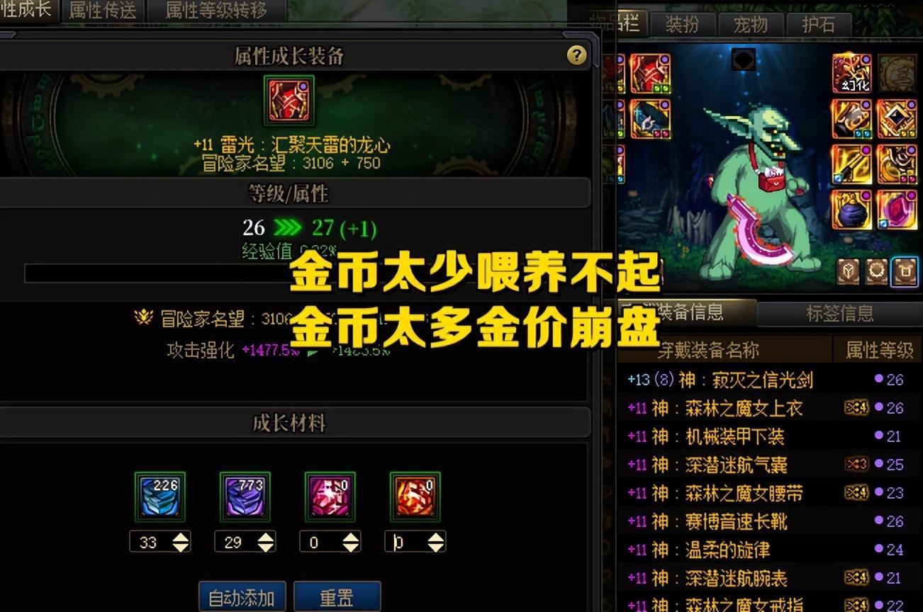 其實這裏有一個根本上的問題,如果金幣產出太少,玩家連裝備都餵養不起;而如果金幣產出太多,那麼必然導致金價崩盤。