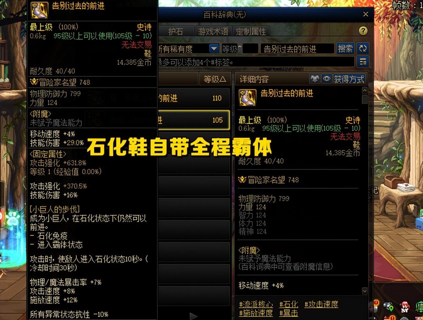 【1】把“萬念俱灰鞋”換成“石化鞋”!很多兄弟依舊穿着“飛電鞋”,實際上“萬念俱灰鞋”比飛電鞋高了1.5%左右,如果用石化鞋替換飛電鞋的話,傷害還會更高。