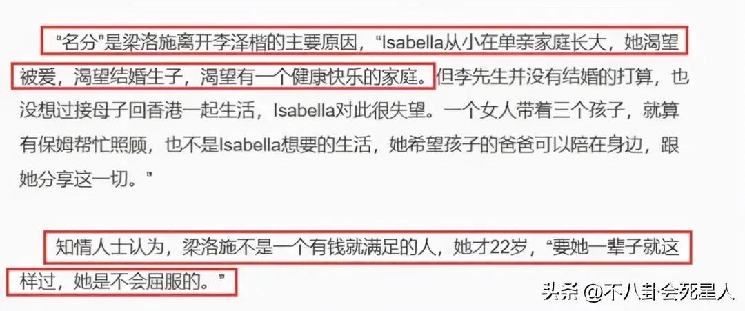 但大家都很清楚,就算梁洛施不會和李澤楷複合,也改成不了梁洛施“人生贏家”的事實,因爲她的3個兒子是李澤楷目前“唯三”的兒子,將來很大概率會繼承李澤楷名下所有財產。