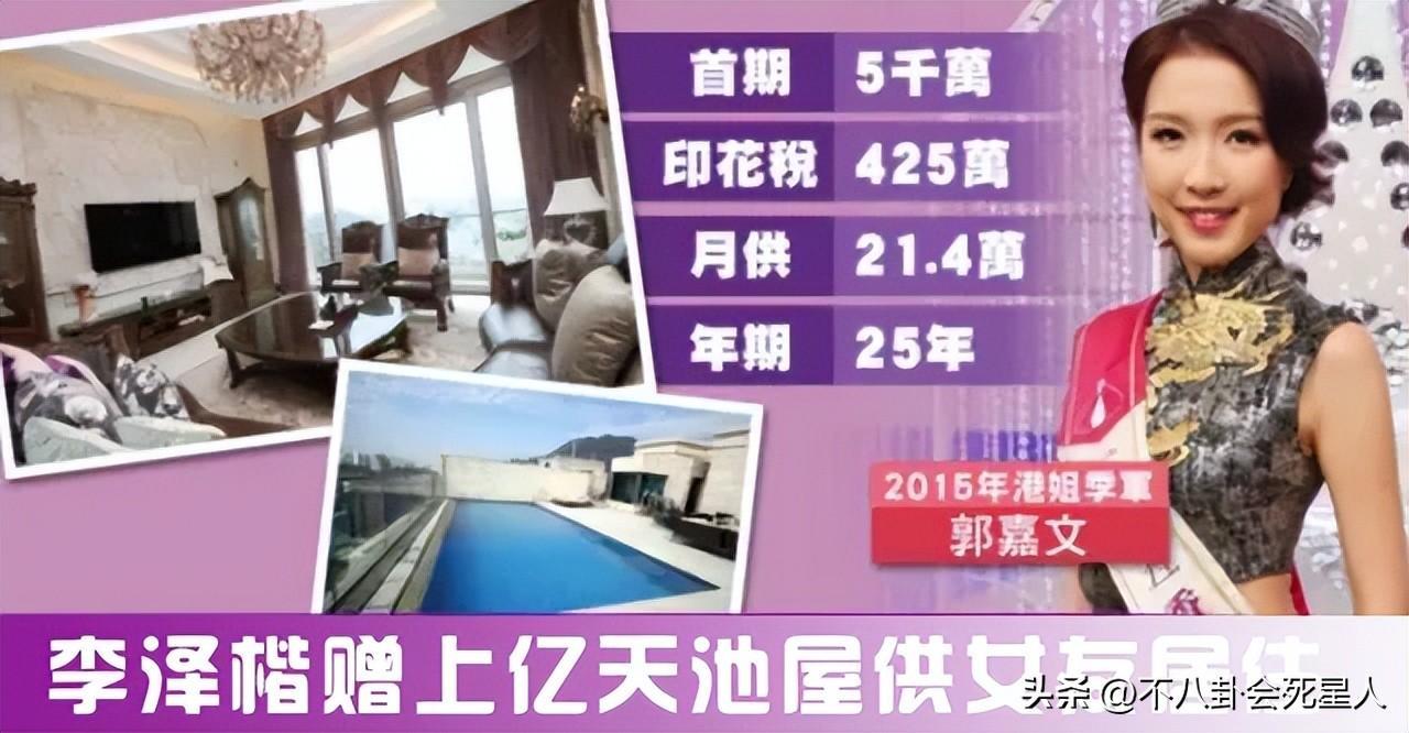 但是李澤楷在和郭嘉文談戀愛沒多久就送了郭嘉文一套近億的豪宅,不過李澤楷支付了5千萬的首付,剩下近5千萬需要郭嘉文自己月供,但只要她還是李澤楷的女朋友,那月供20萬自然也不是問題。