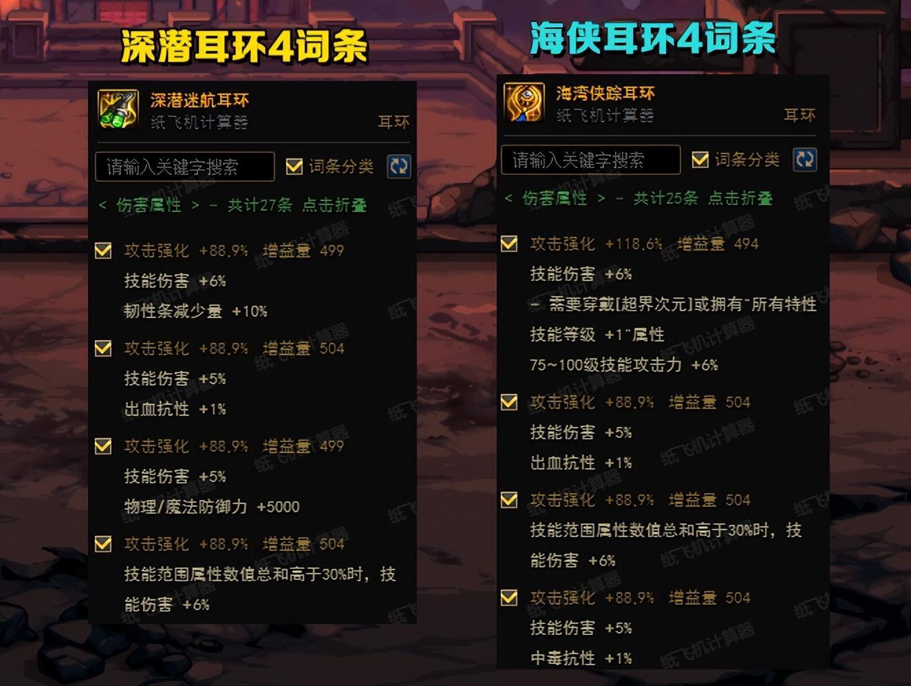 “深潛耳環”推薦4詞條爲「6技攻/10削韌量+5技攻/5000防禦+範圍6技攻+任意5技攻」