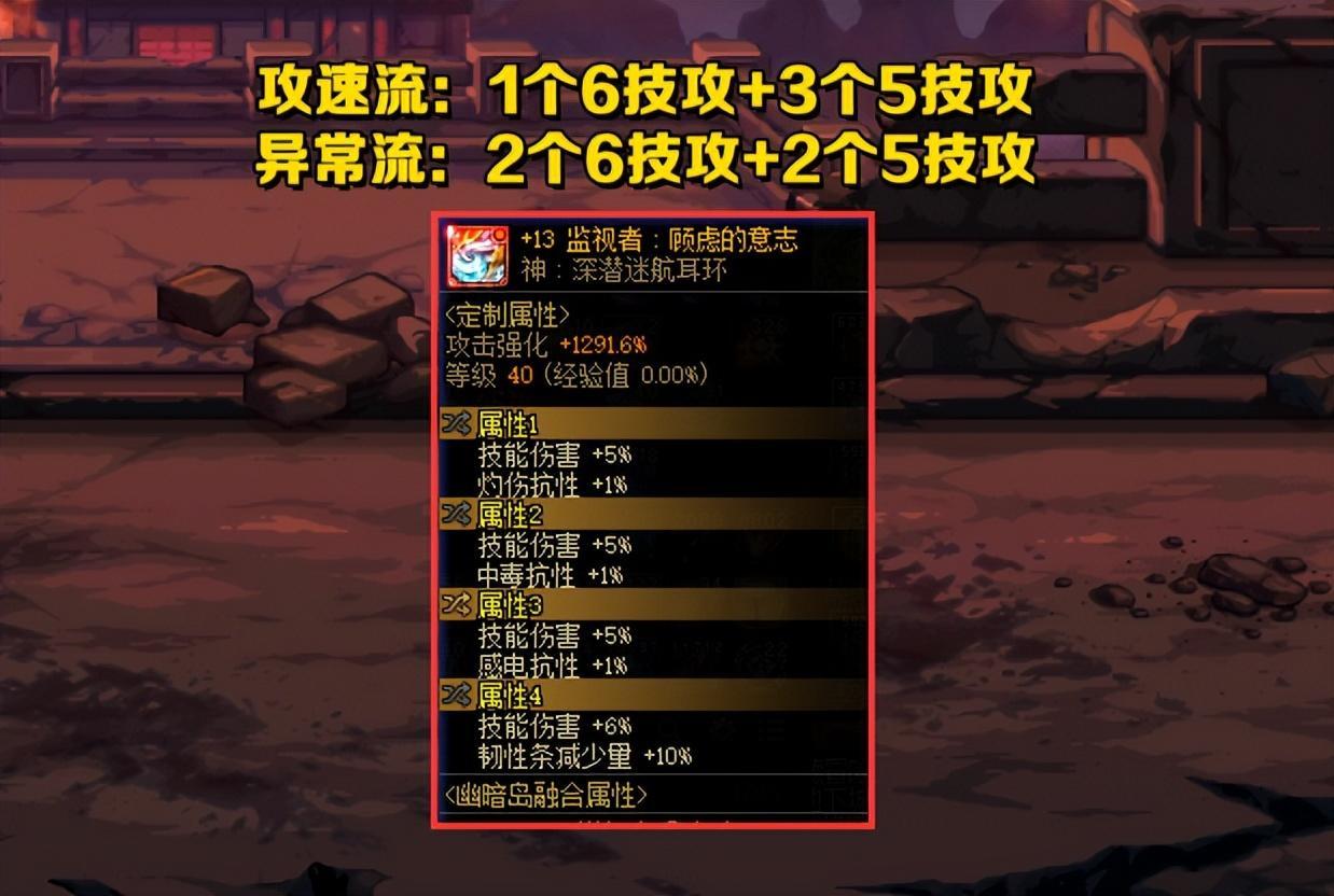 “耳環”如果走攻速流推薦1個6技攻+3個5技攻,異常流推薦2個6技攻+2個5技攻!