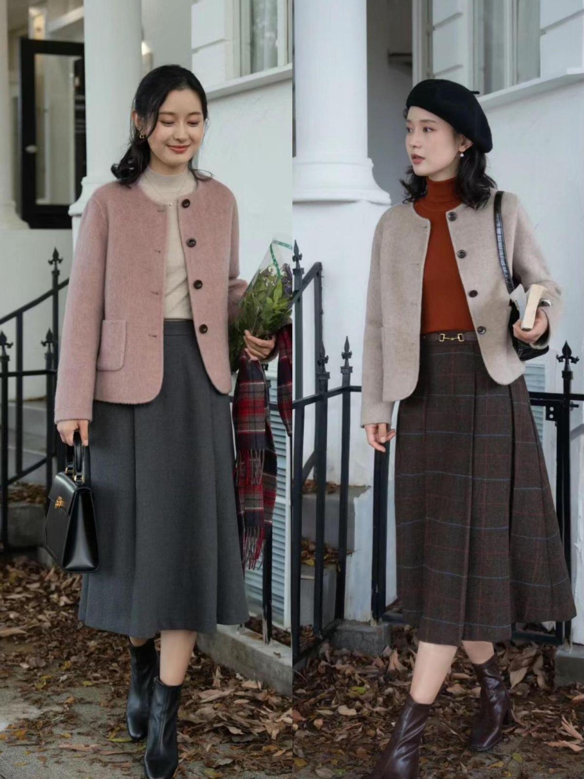 “上短下長”的搭配方式,對於小個子來說是很友好的,個子不高不要煩惱,選擇一些硬挺有型的短款外套,搭配高腰款式的半身闊擺裙,就能輕鬆解決身高問題。而且,裙襬的位置還可以加入褶皺設計,既能夠增添時尚感,還能營造出靈動的狀態。