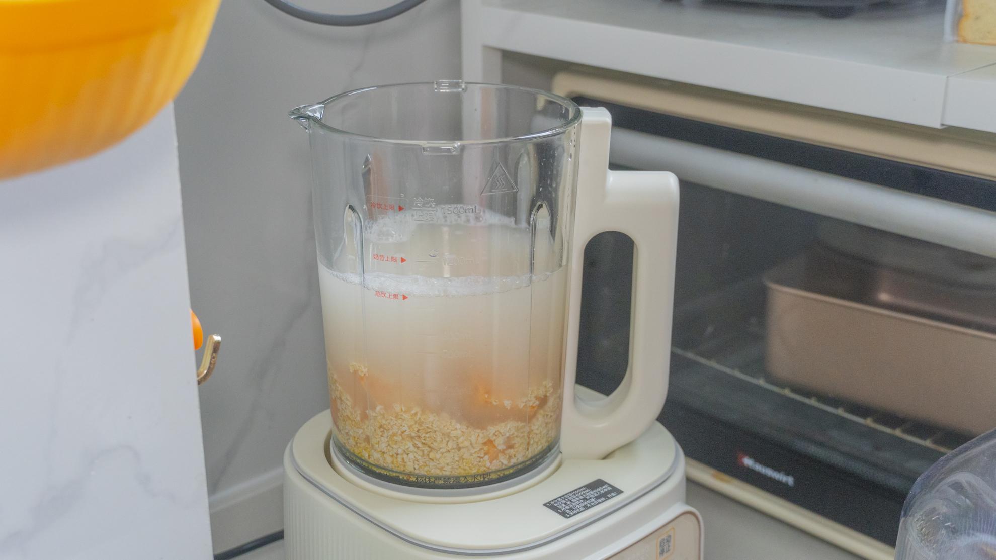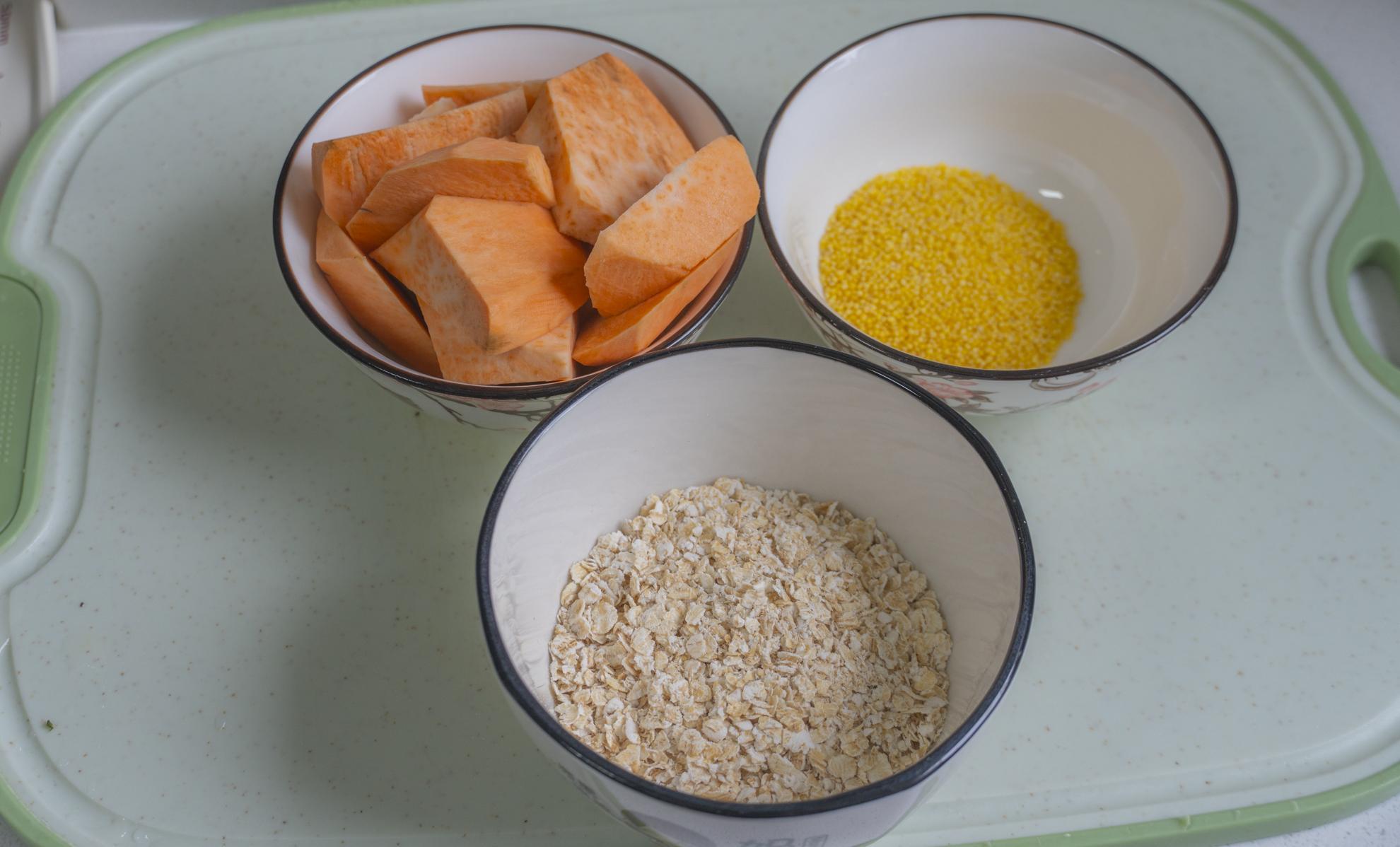 1、早餐我還打了一點紅薯燕麥豆漿,就是加了一點紅薯、小米和燕麥。