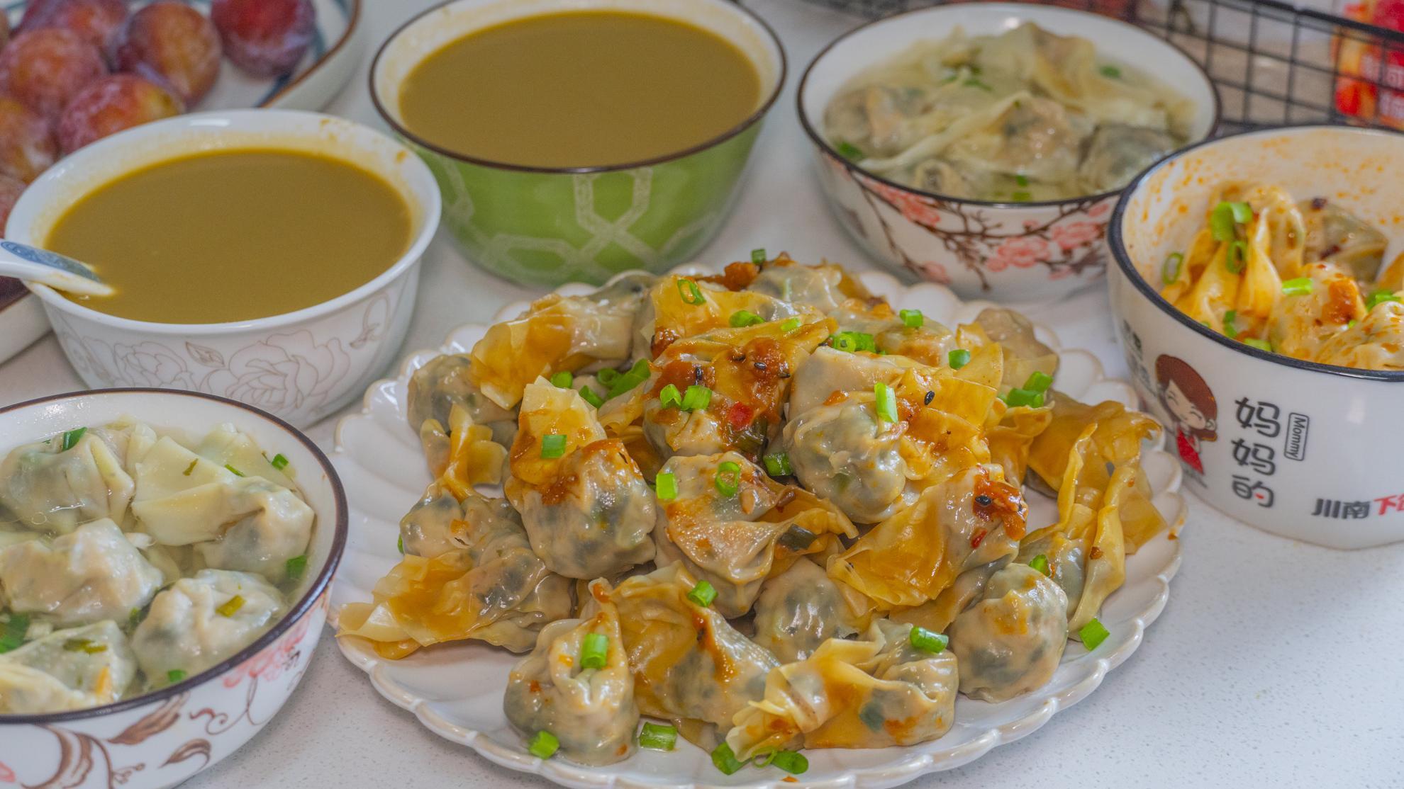 雲吞叫法雖多,但喫法也是多種多樣,有的地方喜歡煮着喫,有的喜歡蒸着喫,有的地方則喜歡炸着喫,不過,無論怎麼喫,雲吞的美味都是無法抵擋的。今兒我們就自己在家來做紫菜餡兒的鮮肉雲吞。