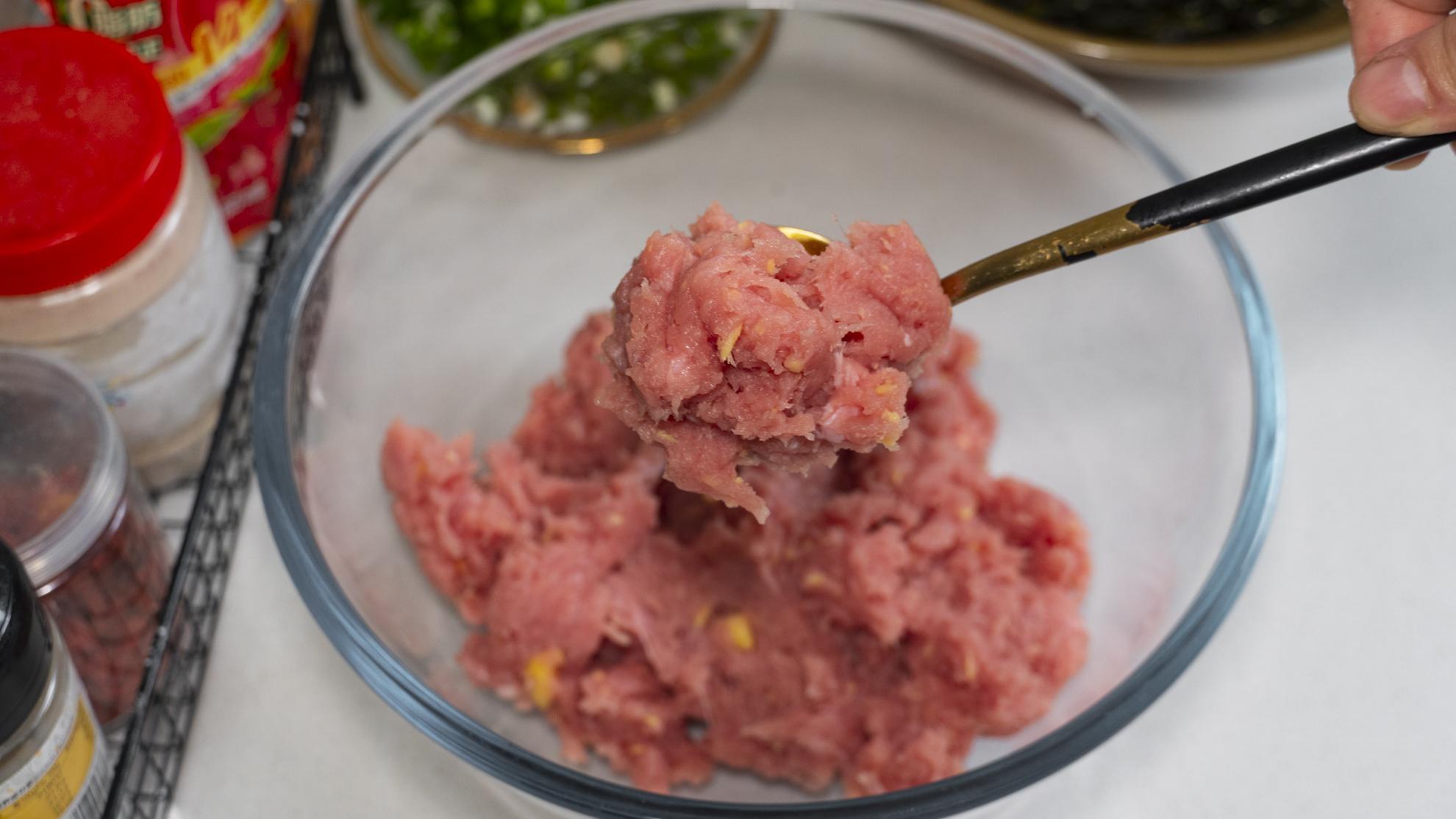 2、做雲吞選用的一般都是純瘦肉,是沒有什麼肥肉在裏面的,最好是用新鮮的豬肉,會更容易上勁兒,口感上也會更鮮嫩Q彈。