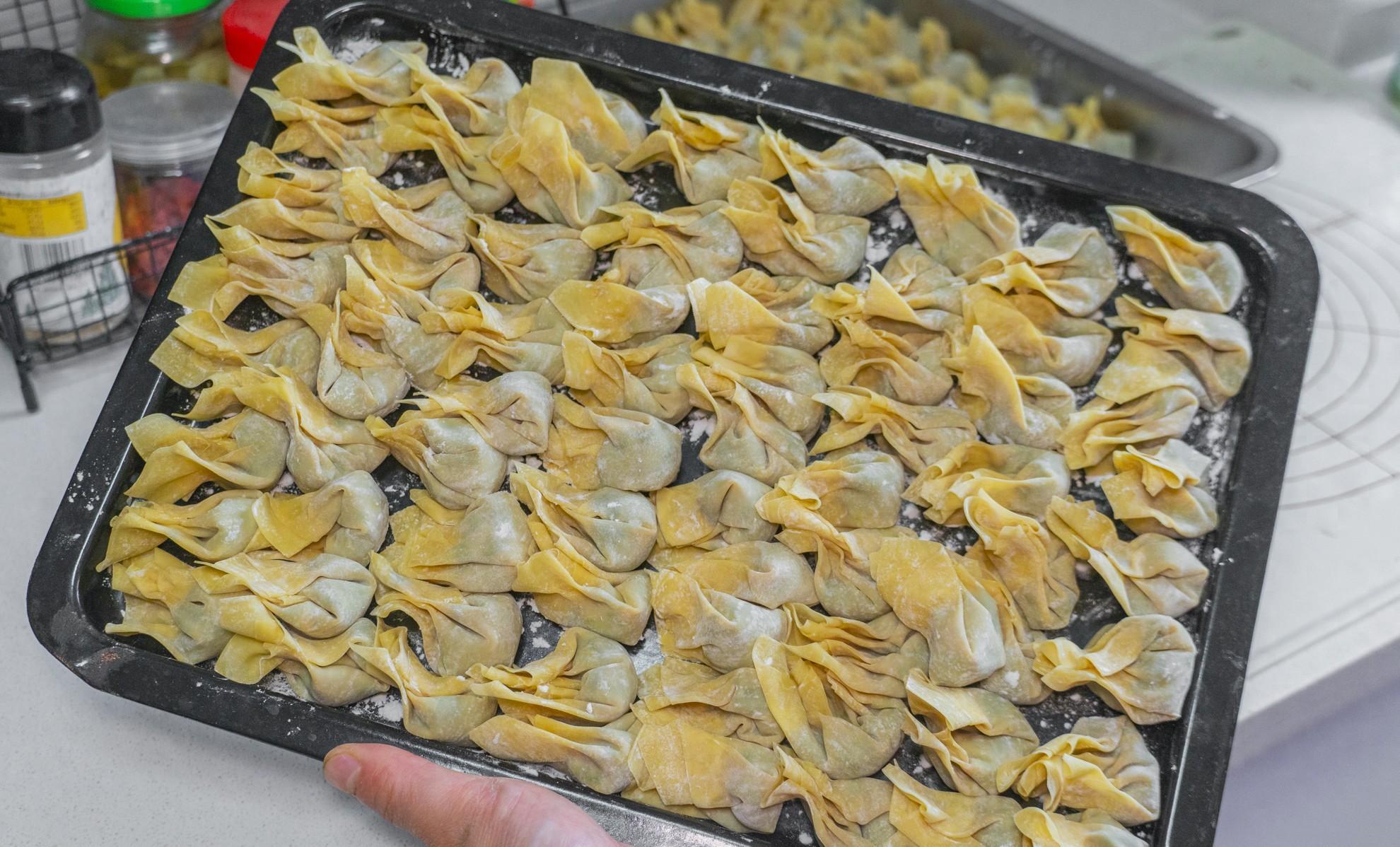 3、雲吞如果要蒸着喫,蒸之前記得噴點水,或者刷點水,這樣皮兒會更有溼潤度,蒸出來口感就會軟很多,不會變硬。