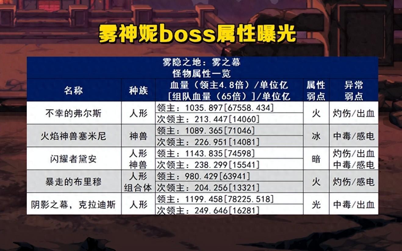 【2】BOSS常駐弱異常!“霧神妮”BOSS比較奇怪,它們的抗性並不是一樣的,如果你用對應屬性去攻擊,那麼相對傷害就會更高。