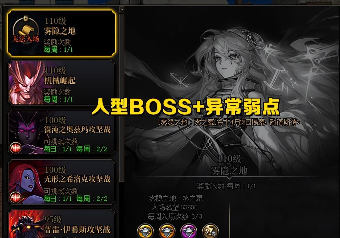 首先我們來看一張圖,“霧神妮”總共有5個BOSS,每週會挑選其中3個上場,每個BOSS都有專屬於自己的技能和機制,目前還不知道是隨機上場、還是輪換上場。