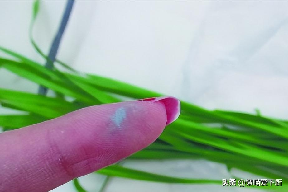 之前就有媒體報道過,有羣衆反映,擇韭菜的時候,發現手指頭被染成了藍色,後經調查發現,是一些無良商販在韭菜表面噴灑了工業原料藍礬,起到保鮮的作用。這類韭菜,辨別起來並不難,可以用手指將韭菜從頭到尾擦一遍,看下手指會不會被染色,如果出現“掉色”的情況,千萬別買。