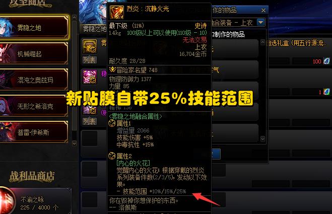 但是在“霧神妮”上線後,會推出一套新的防具貼膜,自帶25%技能範圍!