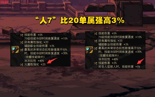 那麼也就是說,我們只需要把“項鍊+戒指”部位的20單屬強,換成“人7技攻”,那麼就可以提升6%以上傷害!