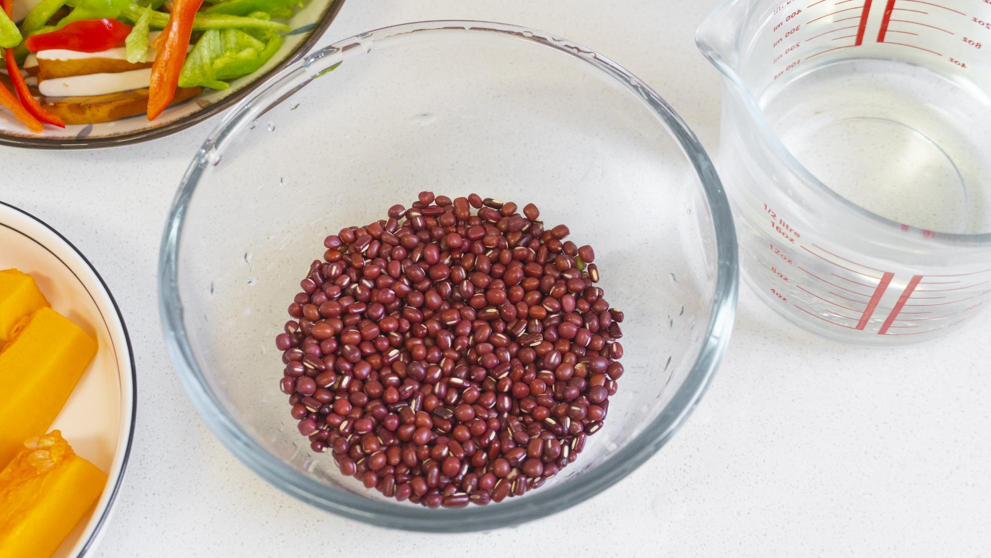 1、紅豆300克,清洗乾淨後加水提前泡發一晚。