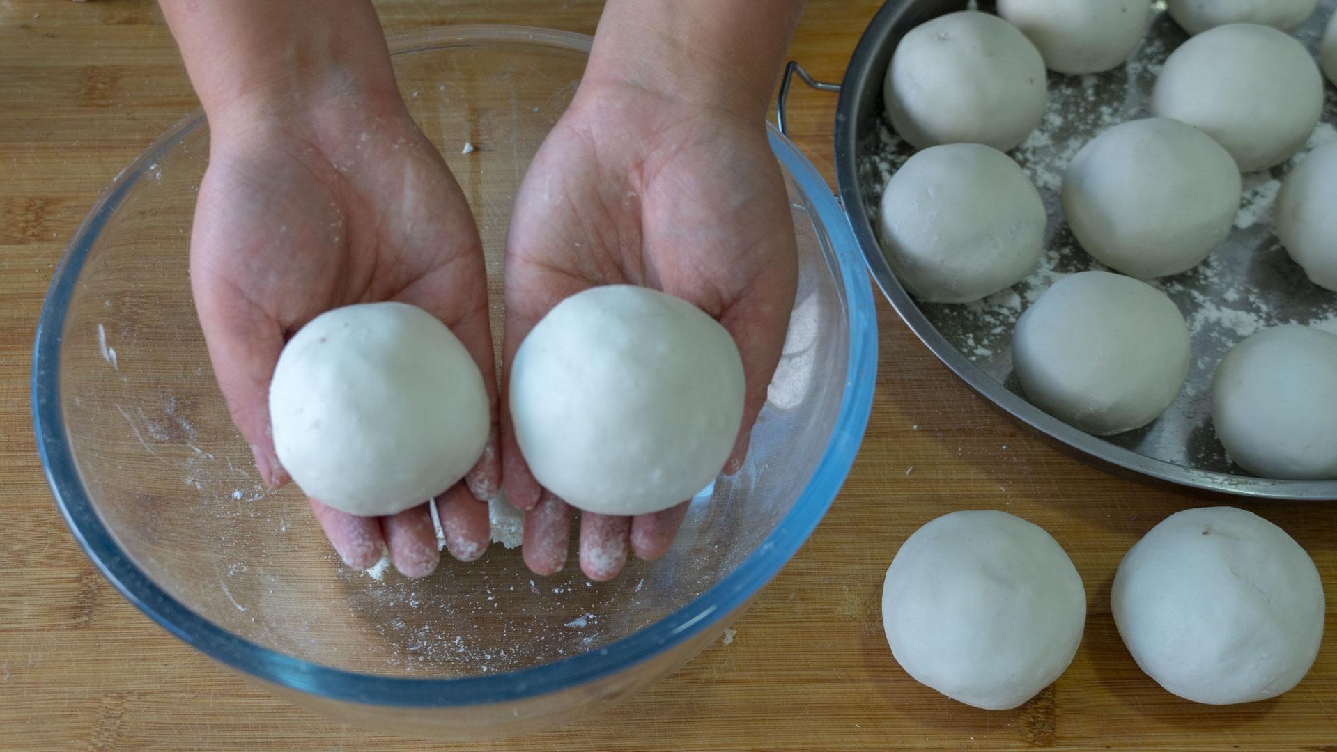 4、稍微的冷卻後再搓成一個個小圓球,我們的紅豆餡兒就做好了,接着讓入冰箱冷藏定型。