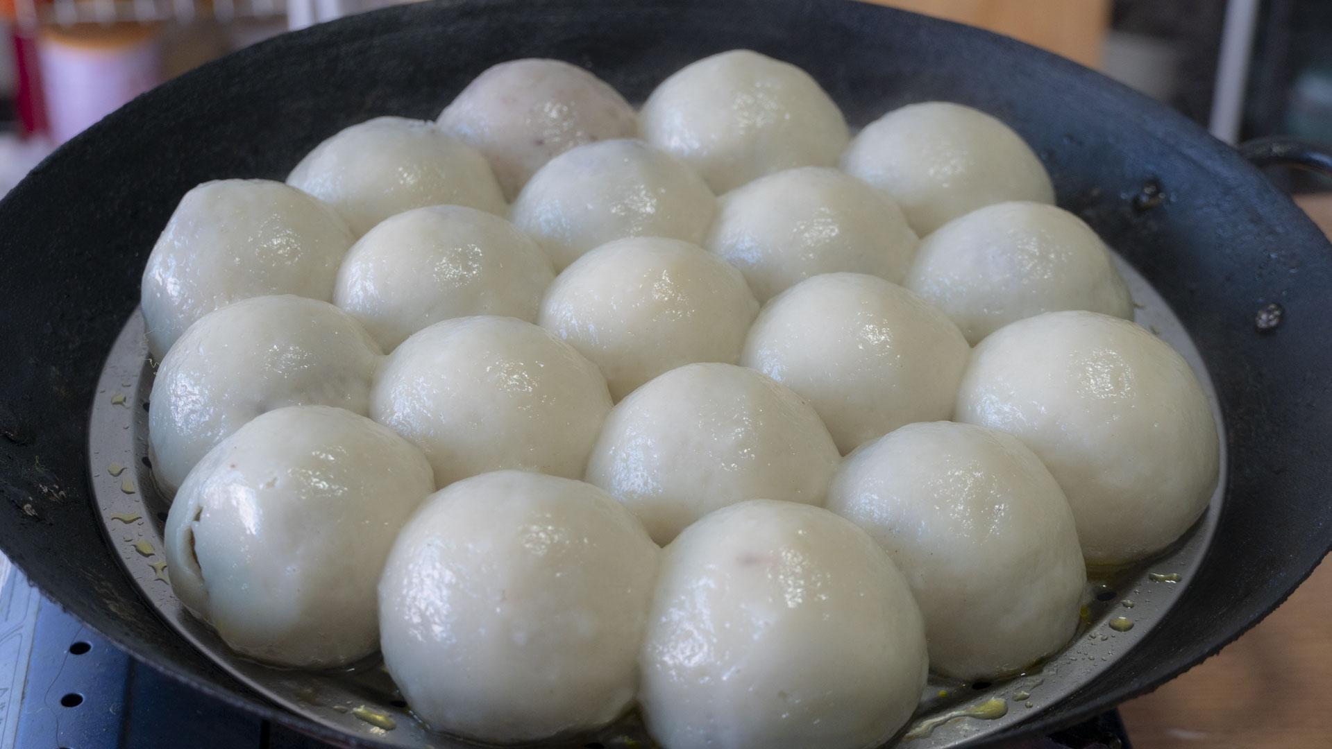 6、起鍋燒水,放入篦子,表面刷油防粘,放入豆包蒸15分鐘。