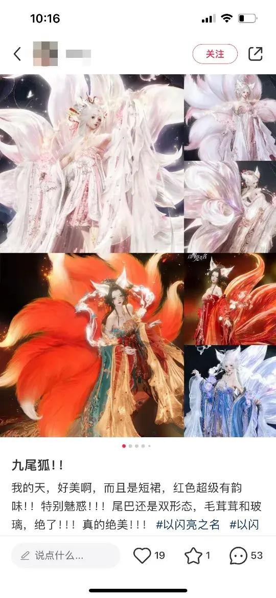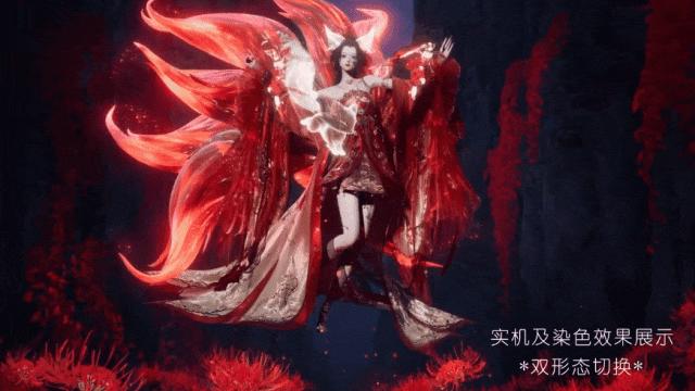 這次週年慶版本上線的九尾狐套裝,進一步展示了遊戲在美術技術力方面的突破。除了絲綢、薄紗、刺繡等不同材質的表現力驚人,更讓玩家眼前一亮的,是尾巴部件實裝了兩種視覺表現。